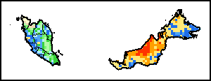 На картах и графиках на уровне страны показывается последний период в 36 месяцев по сезонным показателям, показателям растительного покрова и уровня атмосферных осадков. Данные представляются по 10-дневным периодам и по месяцам. Все три показателя растительного покрова основаны на 10-дневных данных по растительному покрову, полученных от сенсора METOR-AVHRR при разрешении в 1 км (начиная с 2007 года). Данные при разрешении в 1 км за период 1984-2006 гг. были получены из банка данных NOAA-AVHRR при разрешении в 16 км. Оценки атмосферных осадков для всех африканских стран (за исключением Кабо-Верде и Маврикия) получены из системы NOAA/Системы раннего предупреждения об опасности голода (разрешении в 16 km), а по остальным странам данные получены из системы ECMWF (разрешении в 25 km). Благодаря более высокой разрешающей способности показателей состояния растительного покрова (например, NDVI, VHI) по сравнению с показателями осадков, у некоторых стран количество субнациональных единиц, для которых можно получить действительную статистику по данным показателям, больше, чем по показателям осадков.