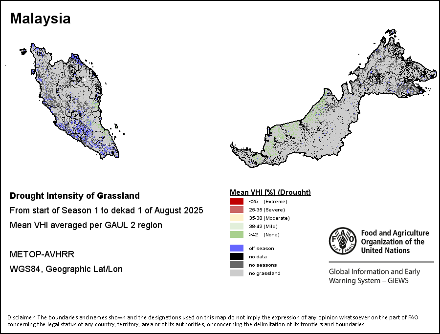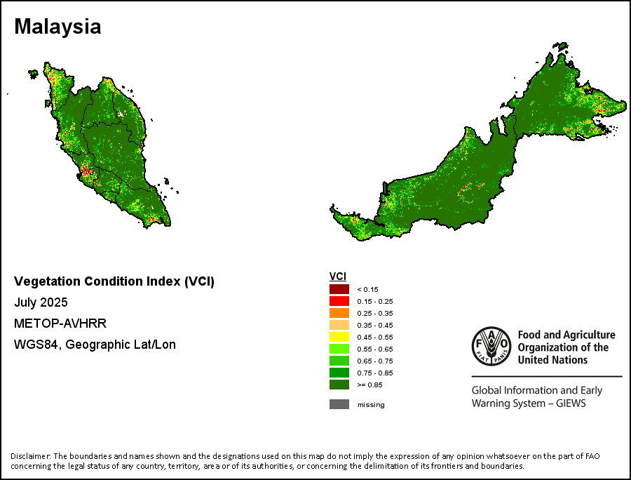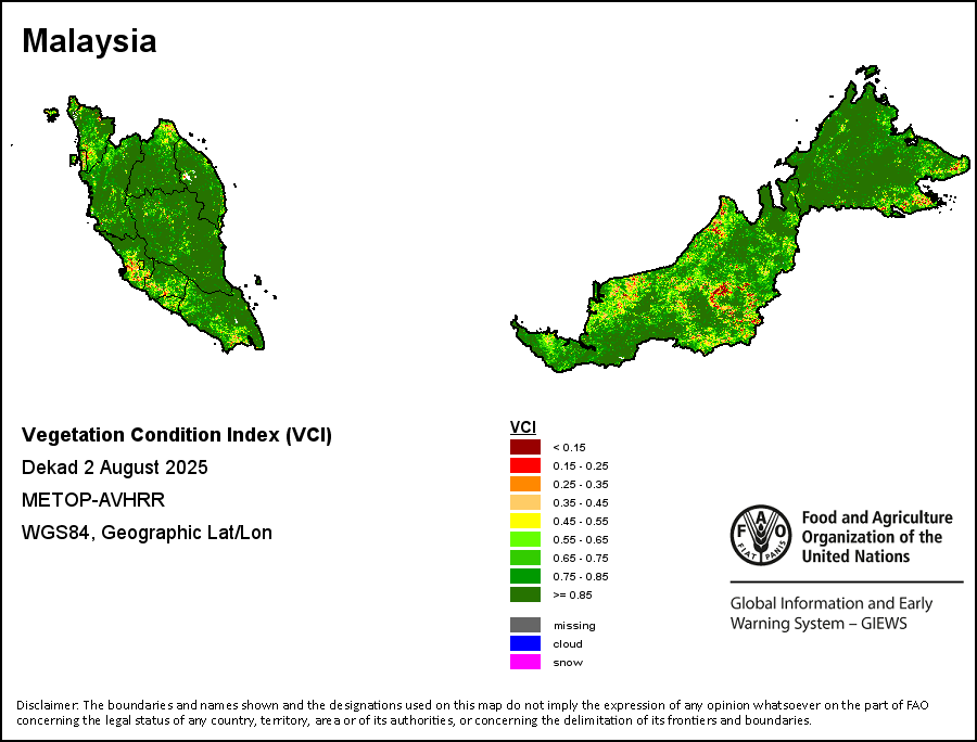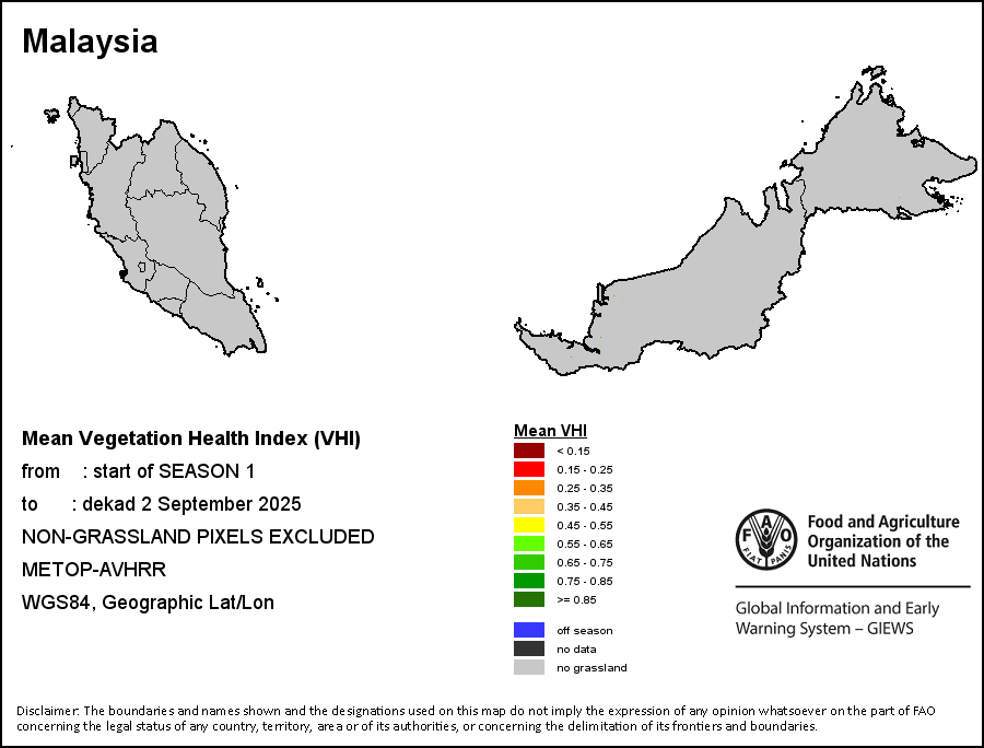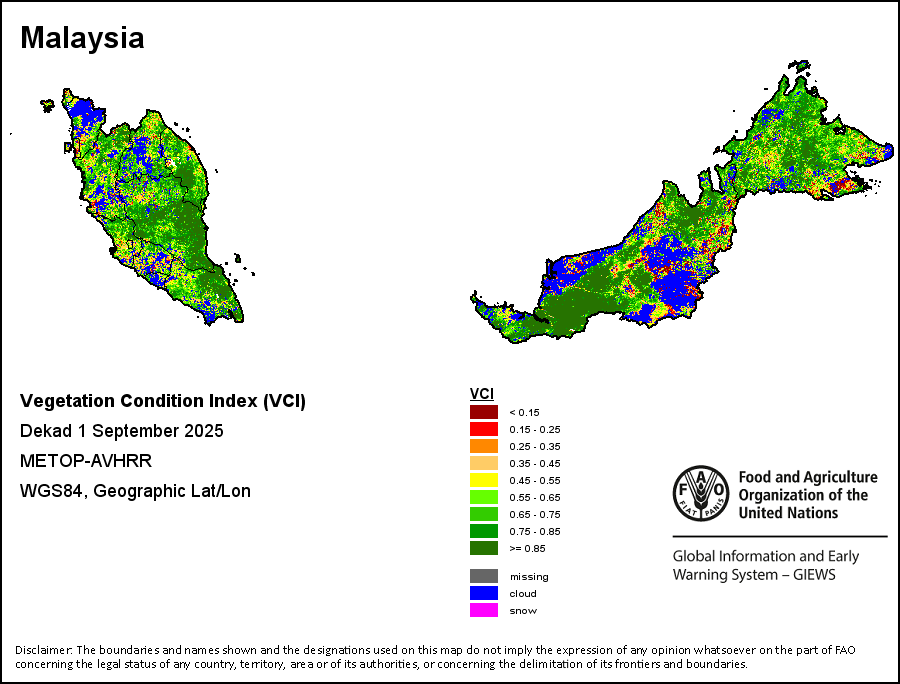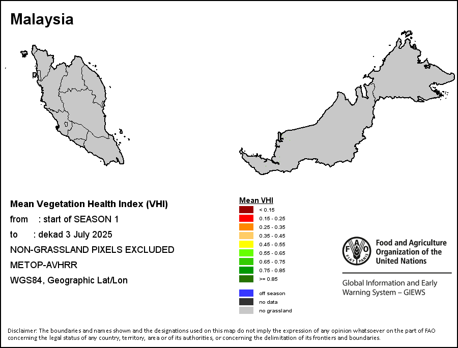 所有三项植被指标都是基于来自METOP-AVHRR遥感卫星分辨率1千米的10天(旬)植被数据(2007年及以后)得出的。1984-2006年期间的1千米分辨率数据得自NOAA-AVHRR16千米分辨率数据集。所有非洲国家的降水量估算(除佛得角和毛里求斯外)均取自NOAA/FEWSNet,其他国家则取自ECMWF。
