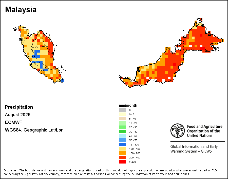 该图谱显示了每一旬(十天)的累积降水量。 所有非洲国家的降水量估算(除佛得角和毛里求斯外)均取自NOAA/FEWSNet,其他国家则取自ECMWF。