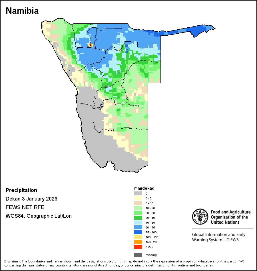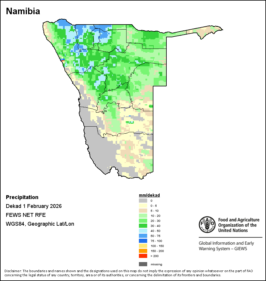 На карте изображены кумулятивные объемы осадков в декаду (10-дневный период). Оценки атмосферных осадков для всех африканских стран (за исключением Кабо-Верде и Маврикия) получены из системы NOAA/Системы раннего предупреждения об опасности голода, а по остальным странам данные получены из системы ECMWF.