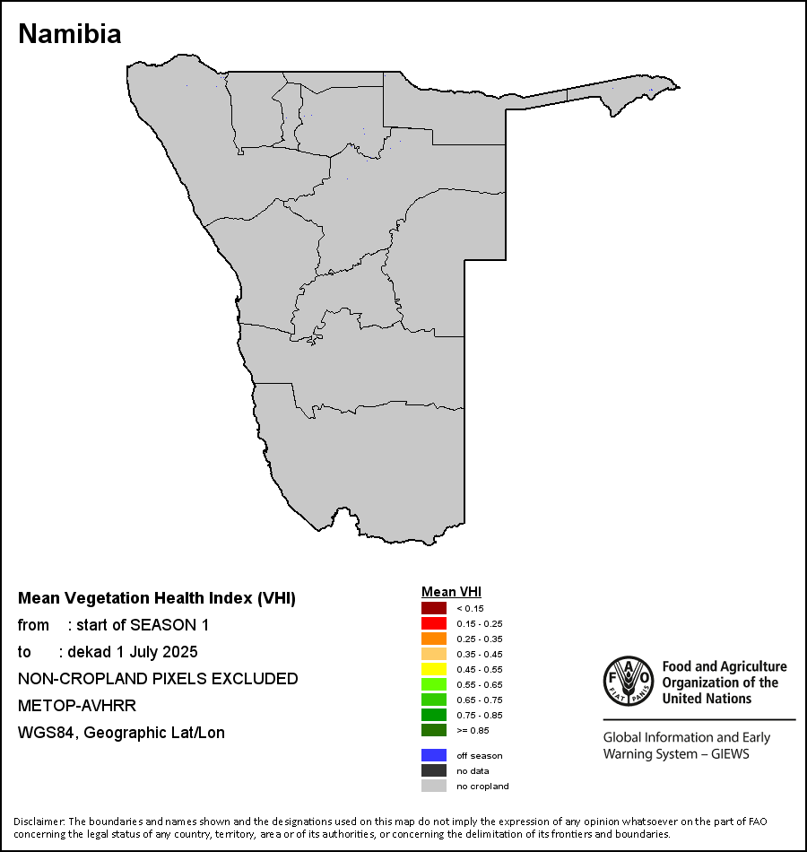 所有三项植被指标都是基于来自METOP-AVHRR遥感卫星分辨率1千米的10天(旬)植被数据(2007年及以后)得出的。1984-2006年期间的1千米分辨率数据得自NOAA-AVHRR16千米分辨率数据集。所有非洲国家的降水量估算(除佛得角和毛里求斯外)均取自NOAA/FEWSNet,其他国家则取自ECMWF。