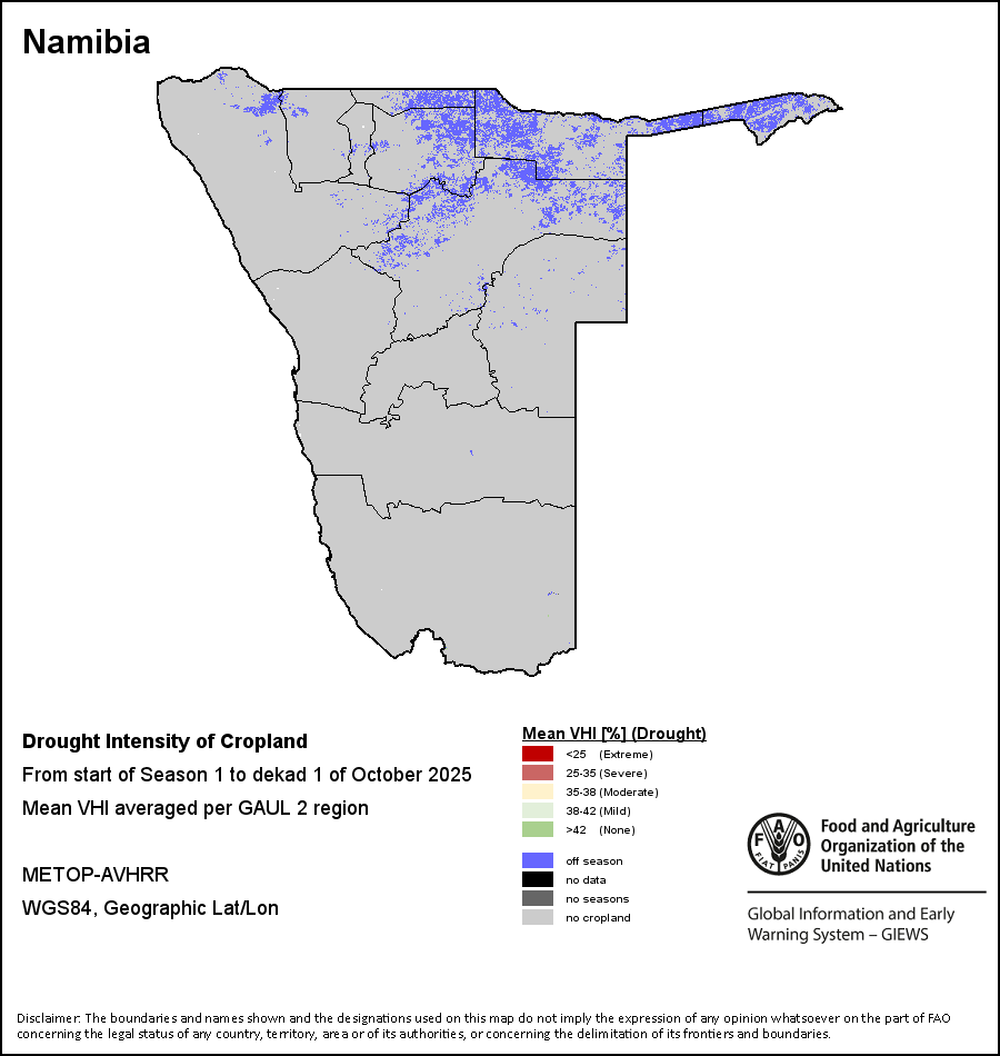 农业干旱依据其强度划分为四类:极端、严重、重度或轻度。干旱的强度通过各全球行政单位分层制度二级区域(GAUL 2)地区累积加权平均植被健康指数计算得出,意味着植被健康状况越差旱情就越严重。