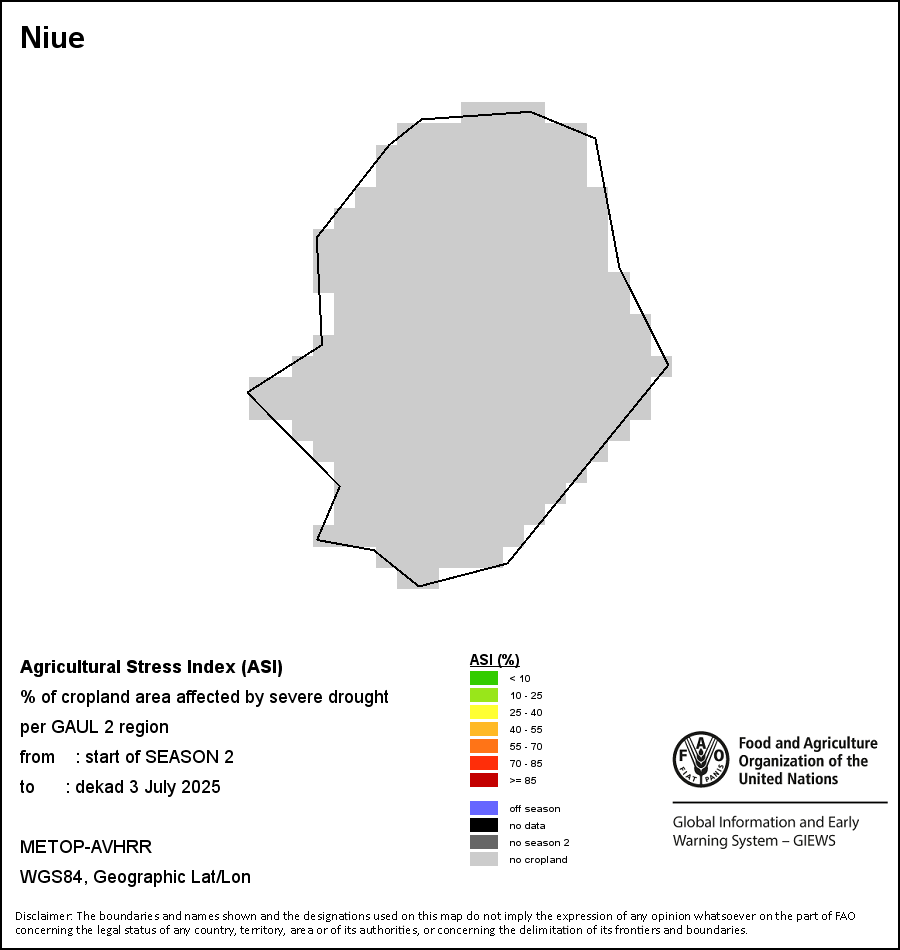 农业干旱胁迫指数(ASI)是一项速览指数,有助于在早期甄别较大可能发生水胁迫(干旱)的耕地。 该指数通过整合植被健康指数(VHI)在评估农业旱情方面具有关键意义的两个维度,即时间和空间维度,而得出。计算农业干旱胁迫指数的第一步是求植被健康指数的时间平均值,对作物周期内旱情的强度和时长进行像素级评估;这项计算包括采用作物系数衡量某种作物在各物候阶段对干旱胁迫的敏感度。第二步是确定旱情的空间广度,方法是计算植被健康指数值低于35%(Kogan前期研究将这一数值确定为评估干旱程度的临界值,1995年)的耕地的像素百分比。然后把各个行政区域根据受影响面积的百分比进行划分,便于对结果进行快速解读。