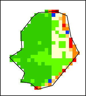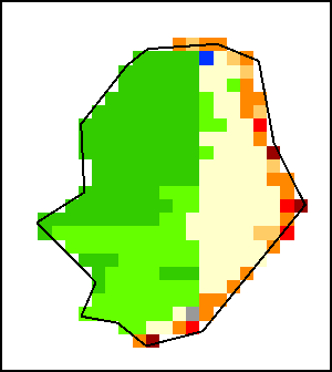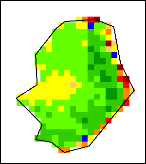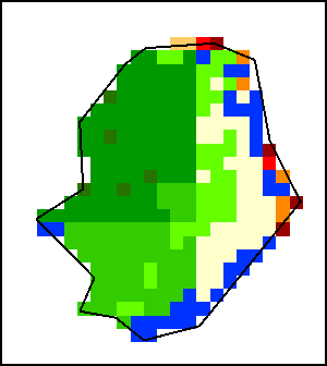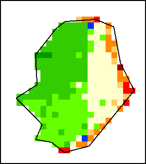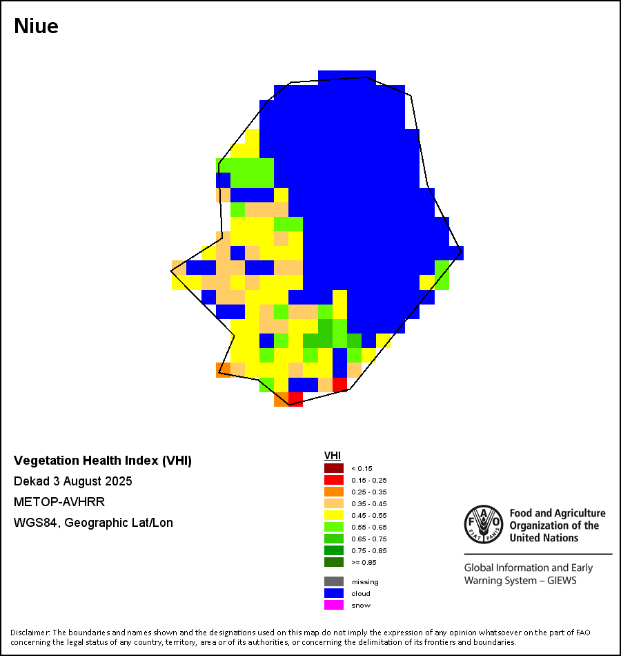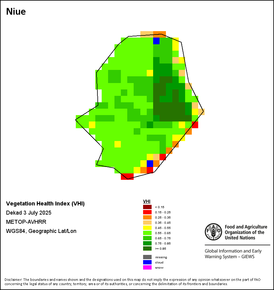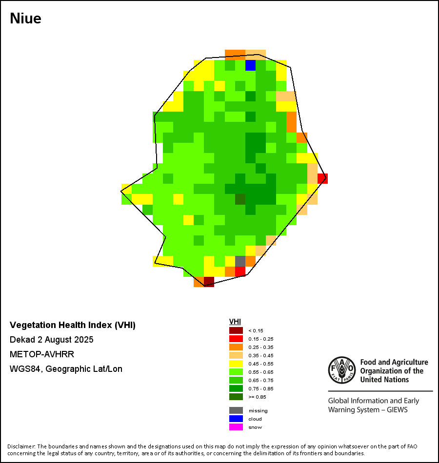 植被健康指数(VHI)根据植被健康状况以及气温对作物状况的影响情况显示干旱的严重程度。 VHI是一项综合指数,是用于计算ASI的基础性指标。它结合了植被状况指数(VCI)和气温状况指数(TCI)。TCI的计算采用了与VCI类似的方程,但它把当前气温与长期最高和最低值联系起来,因为一个假定前提是气温越高就倾向于造成植被状况恶化。比方说,VHI指数下降就意味着植被状况相对较差,而气温越高则意味着植被状况受到胁迫,较长时间延续则成为干旱的指征。VHI映像针对两个主要季节进行计算并分为三种时间模式:旬度、月度和年度。
