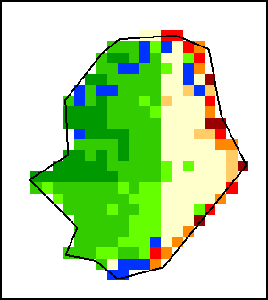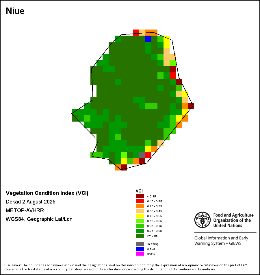 所有三项植被指标都是基于来自METOP-AVHRR遥感卫星分辨率1千米的10天(旬)植被数据(2007年及以后)得出的。1984-2006年期间的1千米分辨率数据得自NOAA-AVHRR16千米分辨率数据集。所有非洲国家的降水量估算(除佛得角和毛里求斯外)均取自NOAA/FEWSNet,其他国家则取自ECMWF。