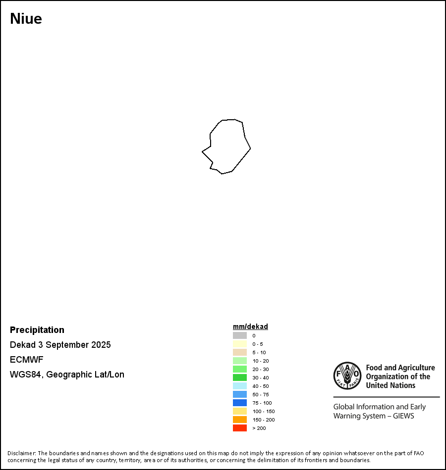 该图谱显示了每一旬(十天)的累积降水量。 所有非洲国家的降水量估算(除佛得角和毛里求斯外)均取自NOAA/FEWSNet,其他国家则取自ECMWF。