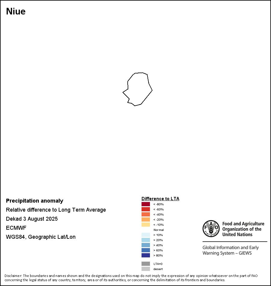该图谱显示了当前降水量与平均水平之间的差异。 由降水量水平与长期平均值(LTA)进行比较得出,长期平均值系指1989-2015年期间的数值。暖色调指示的是降水量低于平均水平的地区,而冷色调指示的则是降水量高于平均水平的地区。降雨量估算数据来自欧洲中期天气预报这些(ECMWF)。
