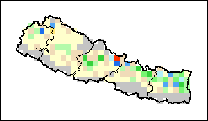 توضح الخريطة الاختلاف بين كمية الهطولات المطرية الراهنة ومعدلها. تقارَن مستويات الهطولات المطرية مع المعدل طويل الأجل الذي يشير إلى الفترة ما بين 1989-2015.