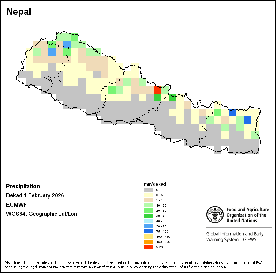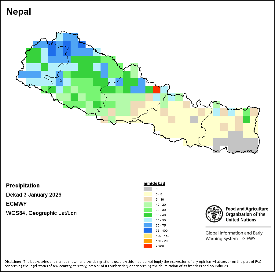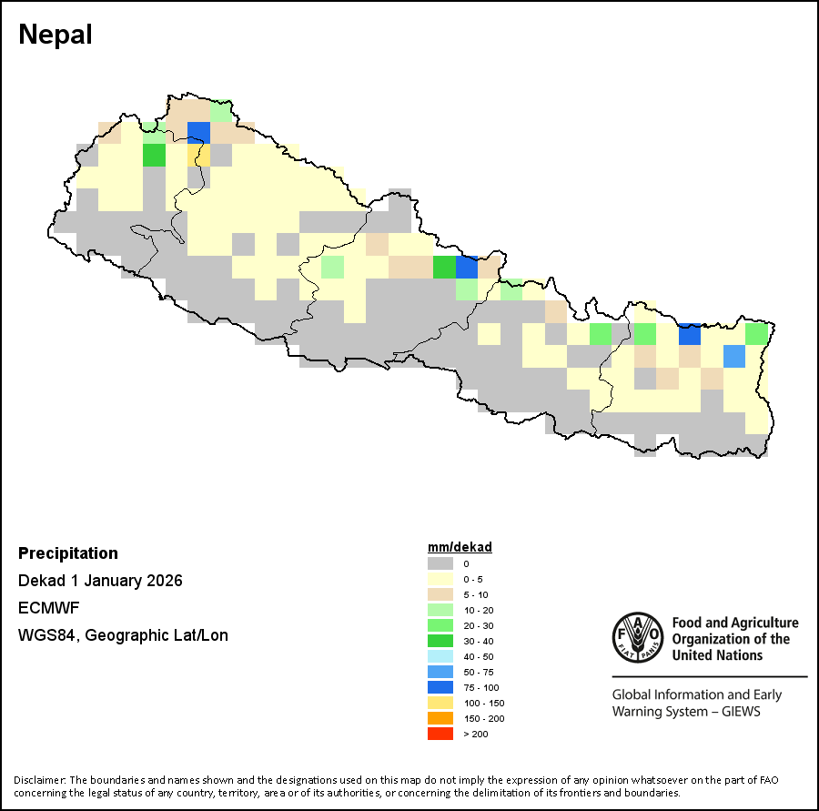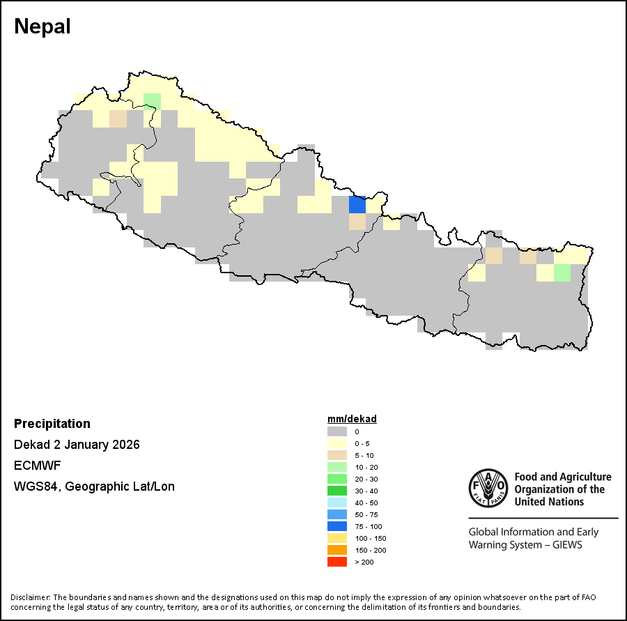 The boundaries and names shown and the designations used on the maps do not imply the expression of any opinion whatsoever on the part of FAO concerning the legal status of any country, territory, city or area or of its authorities, or concerning the delimitation of its frontiers and boundaries.