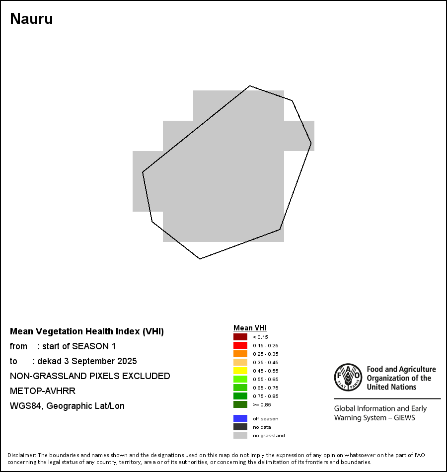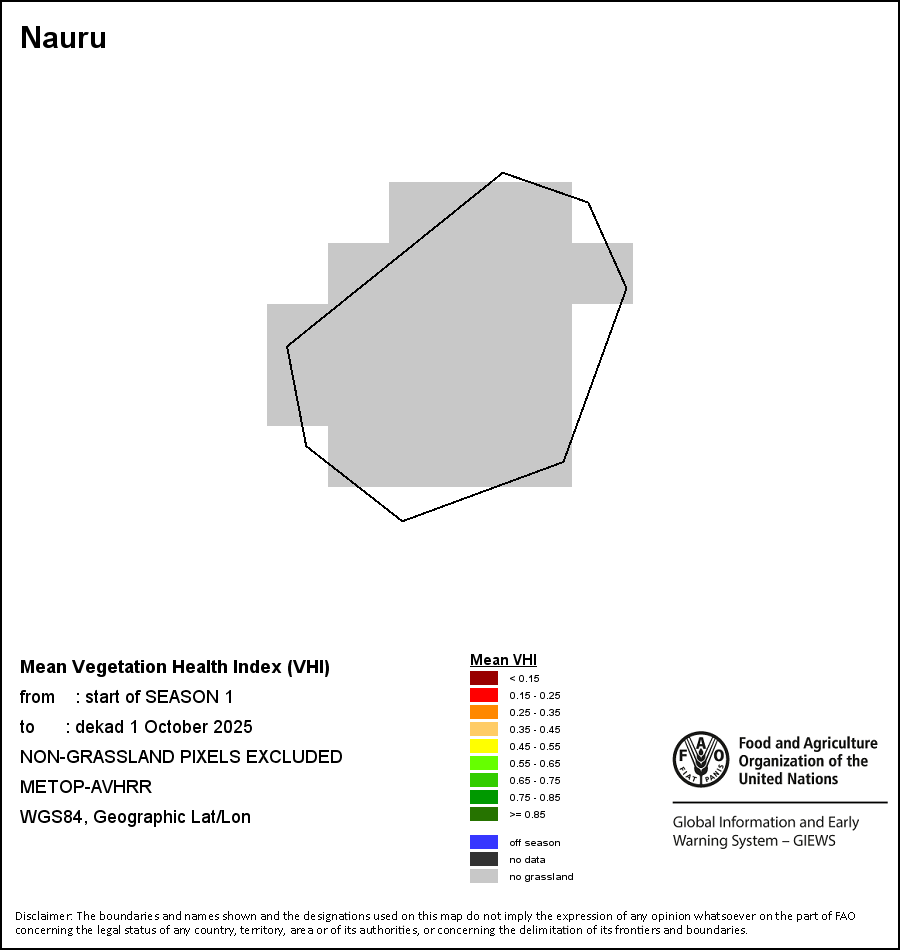 The country level maps and graphs depict the latest 36-month period of the seasonal, vegetation and precipitation indicators. The data is presented by dekad and month.   More