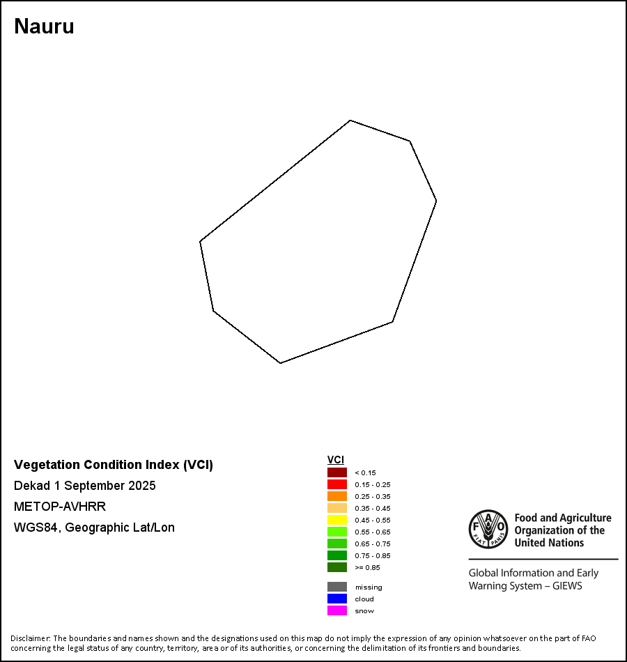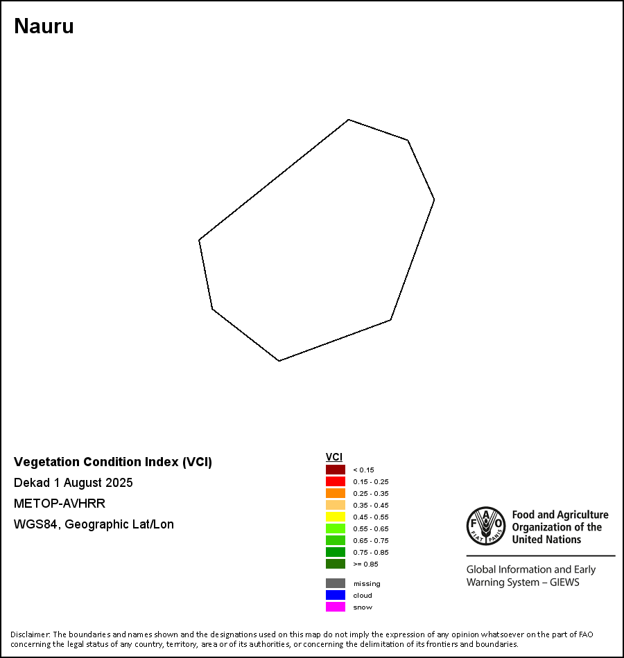 The Vegetation Condition Index (VCI) evaluates the current vegetation health in comparison to the historical trends. The VCI relates current dekadal Normalized Difference Vegetation Index (NDVI) to its long-term minimum and maximum, normalized by the historical range of NDVI values for the same dekad. The VCI was designed to separate the weather-related component of the NDVI from the ecological element.