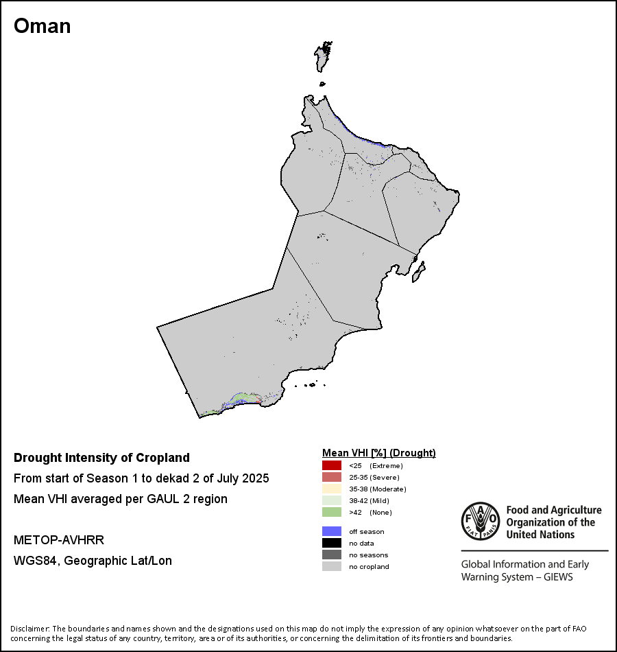 农业干旱依据其强度划分为四类:极端、严重、重度或轻度。干旱的强度通过各全球行政单位分层制度二级区域(GAUL 2)地区累积加权平均植被健康指数计算得出,意味着植被健康状况越差旱情就越严重。