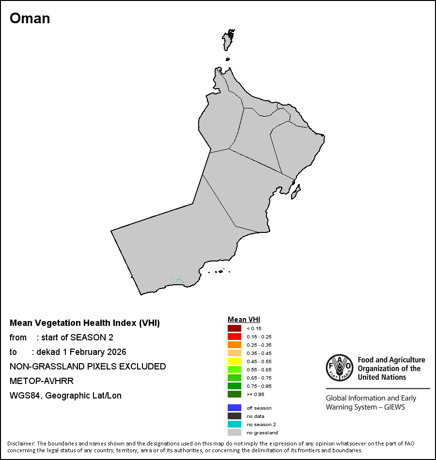 国别地图和图表显示的是最近36个月期间的季节、植被和降水指标。数据按每10天和每月呈现。 所有三项植被指标都是基于来自METOP-AVHRR遥感卫星分辨率1千米的10天(旬)植被数据(2007年及以后)得出的。1984-2006年期间的1千米分辨率数据得自NOAA-AVHRR16千米分辨率数据集。所有非洲国家的降水量估算(除佛得角和毛里求斯外)均取自NOAA/FEWSNet (16千米分辨率),其他国家则取自ECMWF(25千米分辨率)。 由于植被指标(如NDVI、VHI)的空间分辨率高于降水指标,因此,在部分国家能够通过有效分区统计数据计算植被指标的次国家级单元数量,超过能够以相同方式计算降水指标的次国家级单元数量。