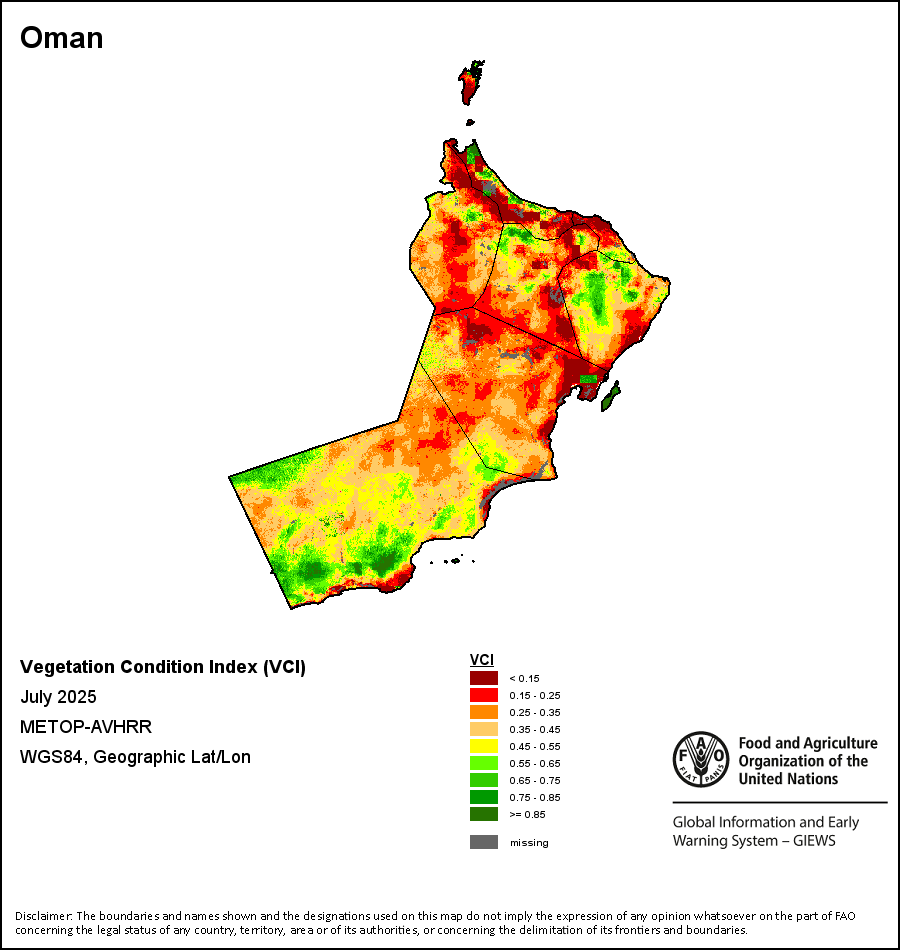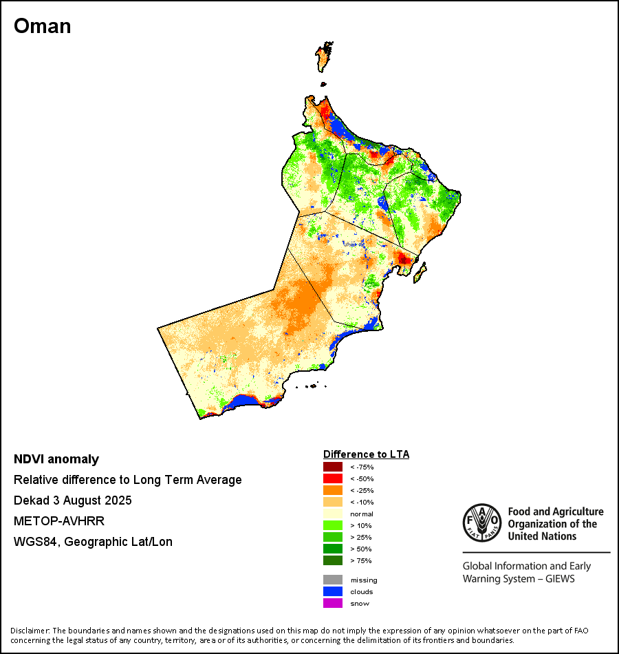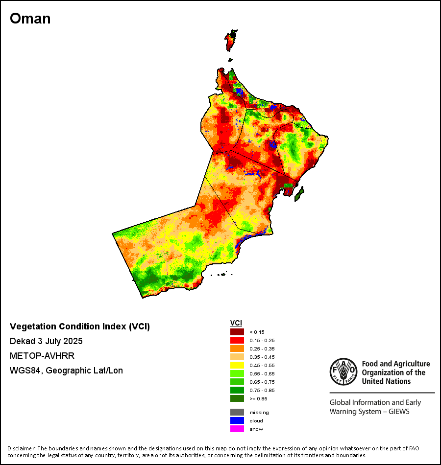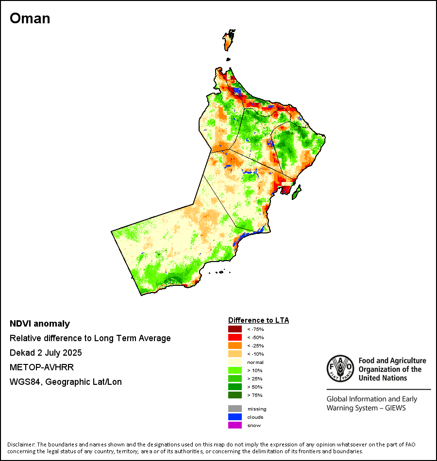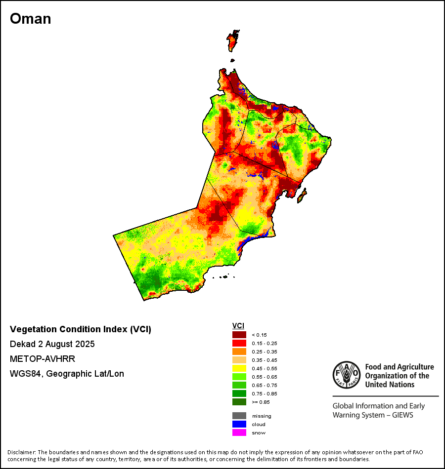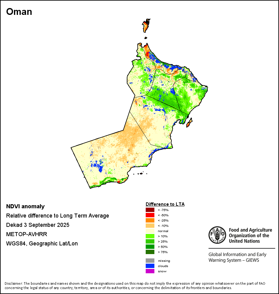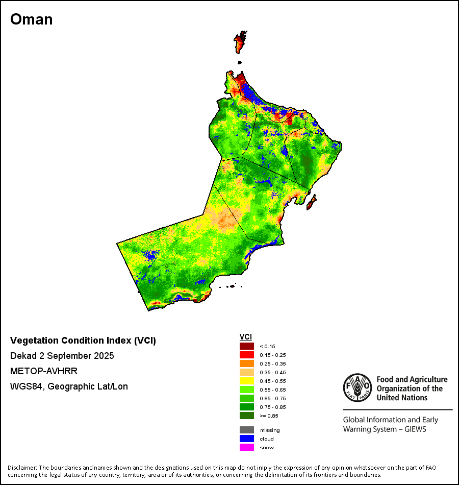 所有三项植被指标都是基于来自METOP-AVHRR遥感卫星分辨率1千米的10天(旬)植被数据(2007年及以后)得出的。1984-2006年期间的1千米分辨率数据得自NOAA-AVHRR16千米分辨率数据集。所有非洲国家的降水量估算(除佛得角和毛里求斯外)均取自NOAA/FEWSNet,其他国家则取自ECMWF。