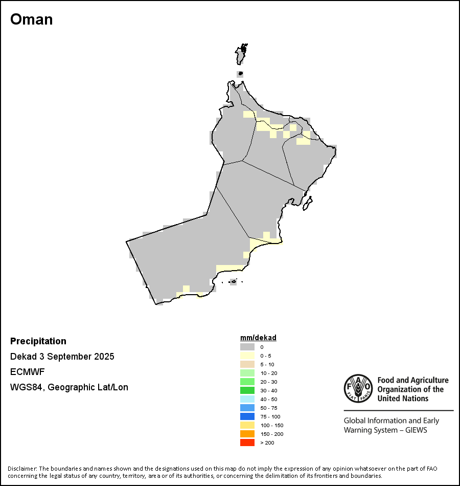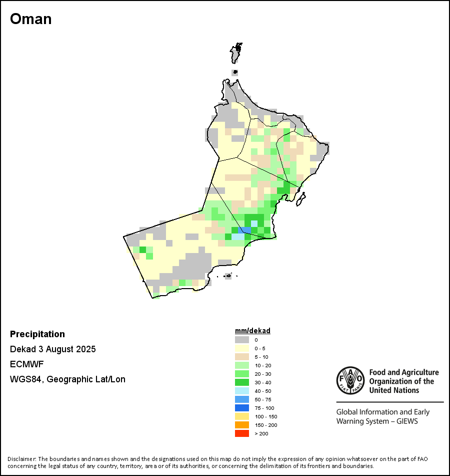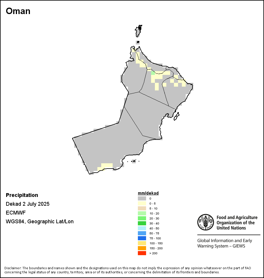该图谱显示了每一旬(十天)的累积降水量。 所有非洲国家的降水量估算(除佛得角和毛里求斯外)均取自NOAA/FEWSNet,其他国家则取自ECMWF。