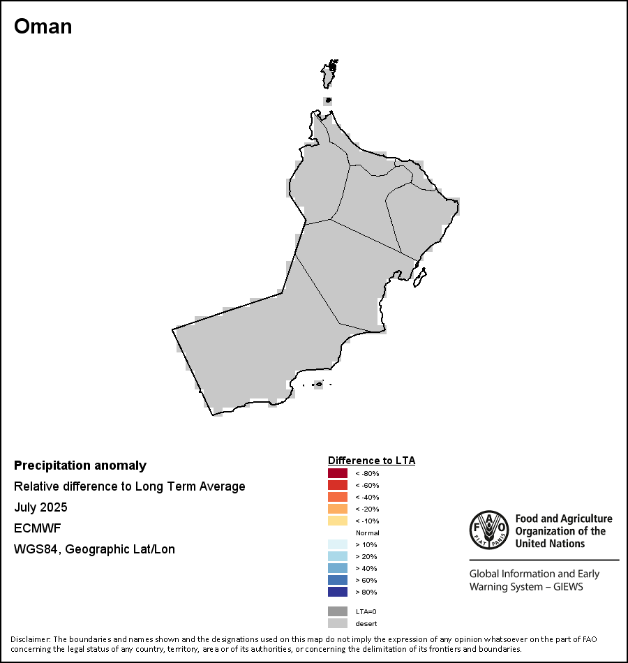 该图谱显示了当前降水量与平均水平之间的差异。 由降水量水平与长期平均值(LTA)进行比较得出,长期平均值系指1989-2015年期间的数值。暖色调指示的是降水量低于平均水平的地区,而冷色调指示的则是降水量高于平均水平的地区。降雨量估算数据来自欧洲中期天气预报这些(ECMWF)。