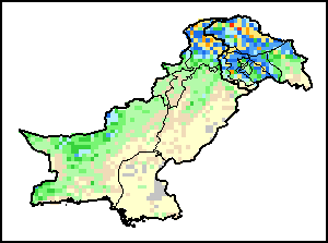 The Agricultural Stress Index (ASI) is a quick-look indicator that facilitates the early identification of cropped land with a high likelihood of water stress (drought). The Index is based on the integration of the Vegetation Health Index (VHI) in two dimensions that are critical in the assessment of a drought event in agriculture: temporal and spatial. The first step of the ASI calculation is a temporal averaging of the VHI, assessing the intensity and duration of dry periods occurring during the crop cycle at the pixel level; this calculation includes the use of crop coefficients, which introduces sensitivity of a crop to water stress during each phenological phase. The second step determines the spatial extent of drought events by calculating the percentage of pixels in arable areas with a VHI value below 35 percent (this value was identified as a critical threshold in assessing the extent of drought in previous research by Kogan, 1995). Each administrative area is classified according to the percentage of the affected area to facilitate the quick interpretation of results.
