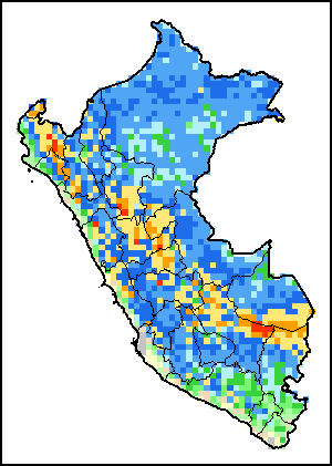 توضح الخريطة الاختلاف بين كمية الهطولات المطرية الراهنة ومعدلها. تقارَن مستويات الهطولات المطرية مع المعدل طويل الأجل الذي يشير إلى الفترة ما بين 1989-2015.