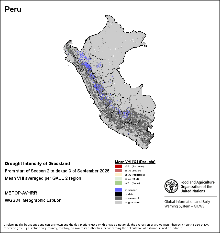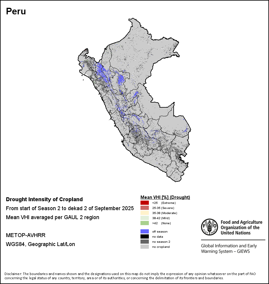 农业干旱依据其强度划分为四类:极端、严重、重度或轻度。干旱的强度通过各全球行政单位分层制度二级区域(GAUL 2)地区累积加权平均植被健康指数计算得出,意味着植被健康状况越差旱情就越严重。