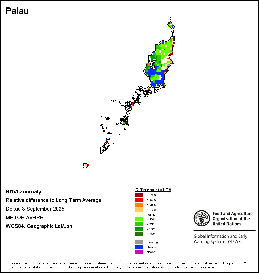 خضعت دراسة المؤشر الموحد لتباين الغطاء النباتي إلى مقارنة مع المعدل طويل الأجل (1984- 2015) وبيانات العام السابق على المستوى الإداري الأول.