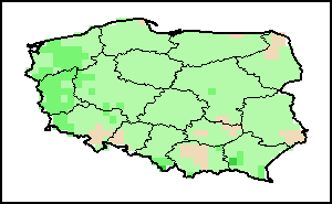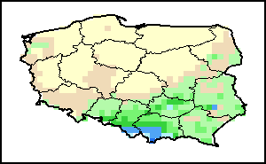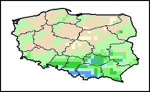 El mapa refleja la diferencia entre el volumen actual de precipitaciones y el nivel medio. Los niveles de precipitación se comparan con el valor medio a largo plazo, correspondiente al periodo 1989-2015. Los colores más cálidos representan zonas con precipitaciones inferiores a la media, mientras que los colores más fríos se asignan a aquellas zonas con precipitaciones superiores a la media.