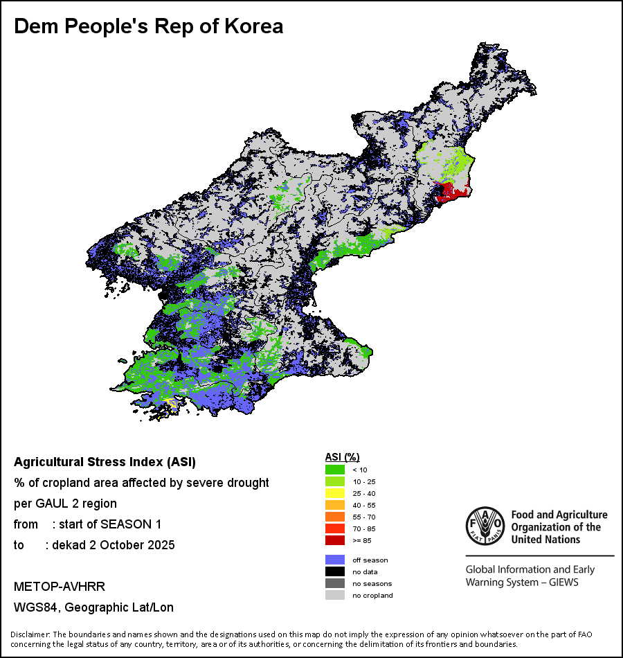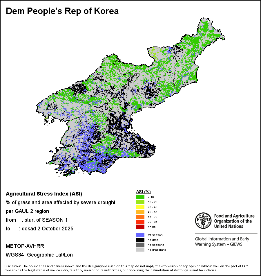 End of Season (EOS) indicates when crop/grass has reached physiological maturity, defined as the date when the descending NDVI-curve crosses NDVIe, This date does not necessarily correspond to the harvest period.