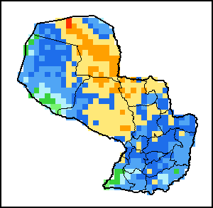The map illustrates the difference between the current rainfall volume and the average level. Rainfall levels are compared with the Long-Term Average (LTA), which refers to the period 1989-2015. Warmer colours identify areas which have received lower-than-average rainfall, while colder colours are given to areas where precipitation has been above average.