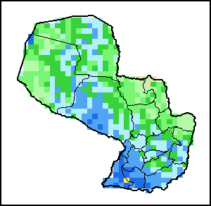 Los mapas y gráficos nacionales representan el último periodo de 36 meses de los indicadores estacionales, de vegetación y de precipitación. Los datos se presentan por periodos de 10 días y por meses. Los tres indicadores de vegetación se basan en datos de vegetación registrados cada diez días por el sensor METOP-AVHRR con una resolución de 1km (2007 y posterior). Los datos con una resolución de 1km del período 1984-2006 se extrapolaron a partir del conjunto de datos NOAA-AVHRR con 16km de resolución. Las estimaciones de precipitación de todos los países africanos (excepto Cabo Verde y Mauricio) se obtienen de NOAA/FEWSNet (16km de resolución), mientras que para los restantes países los datos se obtienen Centro Europeo de Predicción Meteorológica a Plazo Medio (ECMWF siglas en Inglés, 25km de resolución). Debido a la mayor resolución de los indicadores de vegetación (p.ej., NDVI, VHI) en comparación con los indicadores de precipitación de resolución más gruesa, el número de unidades subnacionales para las que se pueden generar estadísticas zonales válidas para los índices de vegetación es mayor que el número de unidades para los indicadores de precipitación en algunos países.