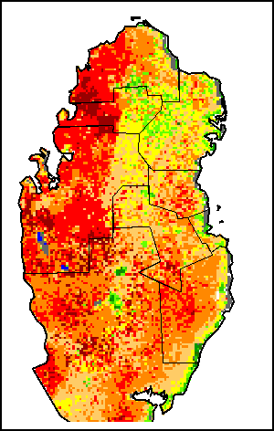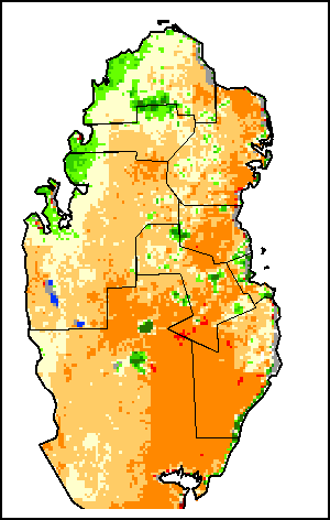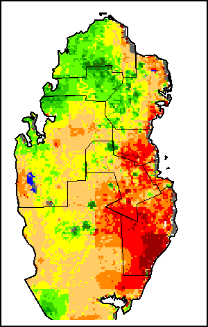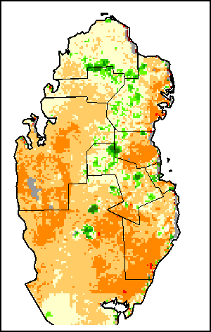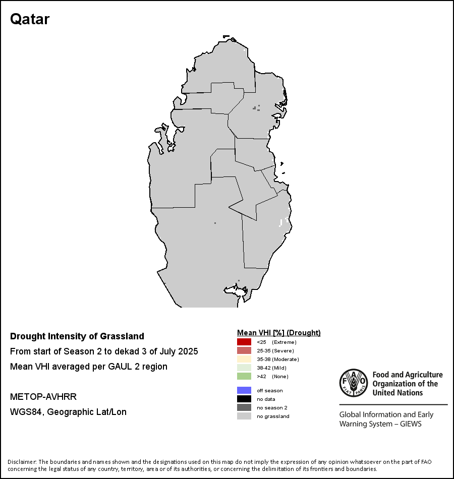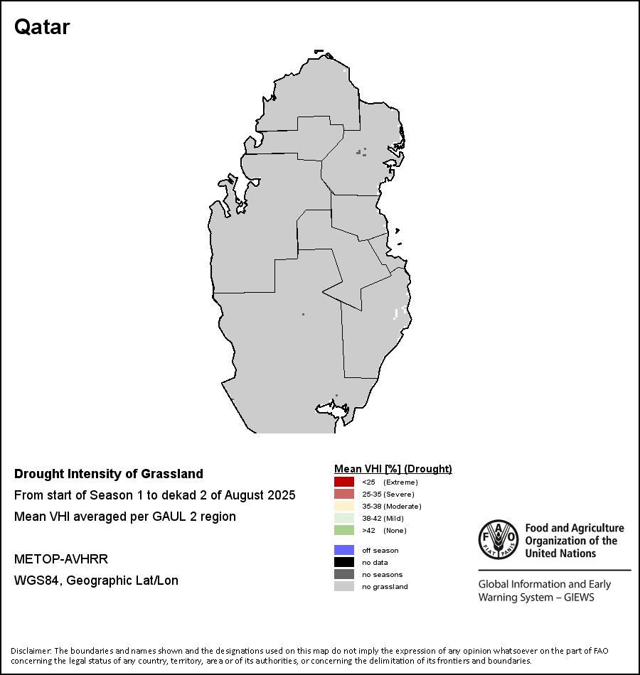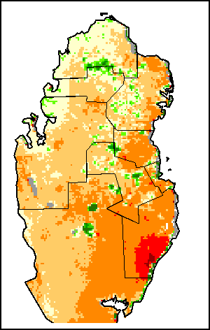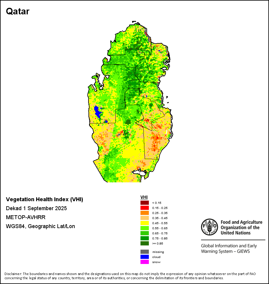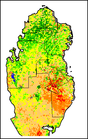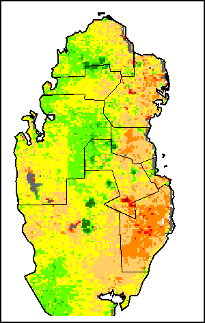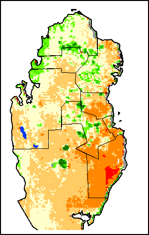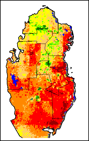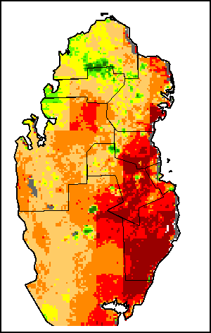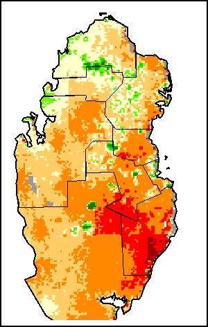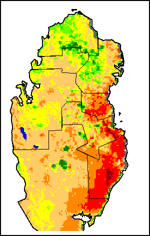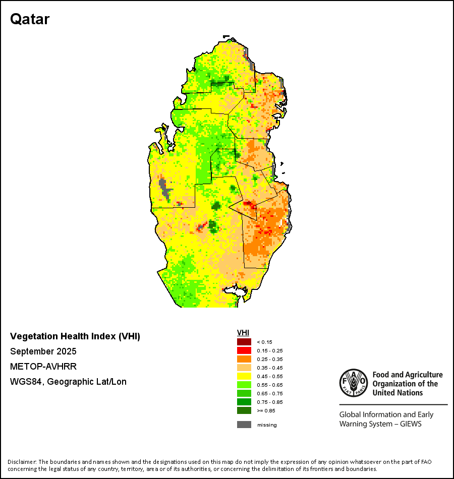 خضعت دراسة المؤشر الموحد لتباين الغطاء النباتي إلى مقارنة مع المعدل طويل الأجل (1984- 2015) وبيانات العام السابق على المستوى الإداري الأول.
