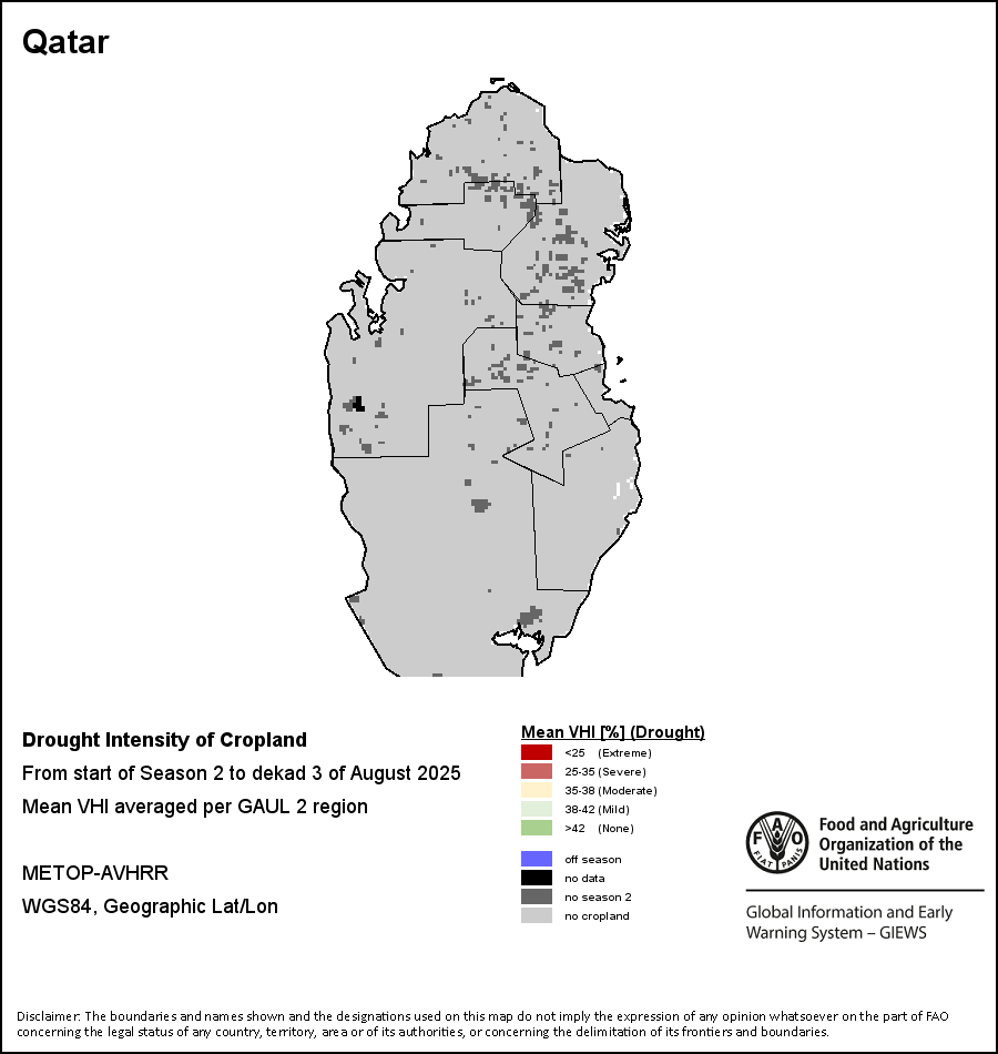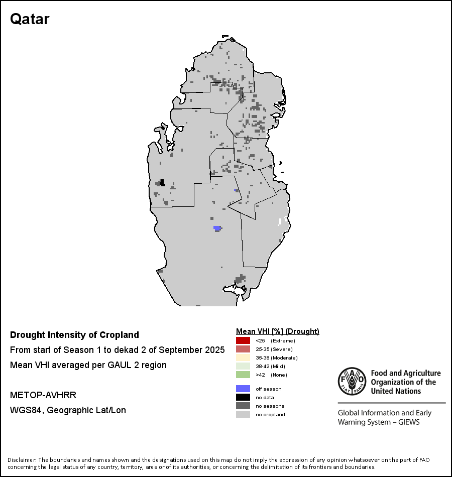 تصنف موجات الجفاف الزراعي تبعاً لشدتها وتقسم إلى أربعة مستويات: متطرفة أو شديدة أو متوسطة، أو خفيفة. وتحسب شدة الجفاف من خلال متوسط المؤشر المرجح لصحة النبات، الذي يشير إلى أنه كلما تردت الصحة النباتية أكثر كان الجفاف أشد. أما الملخص السنوي لشدة الجفاف فيعطي المستخدم إمكانية تقييم إجمالي شدة الجفاف على امتداد الموسم الزراعي بأكمله.