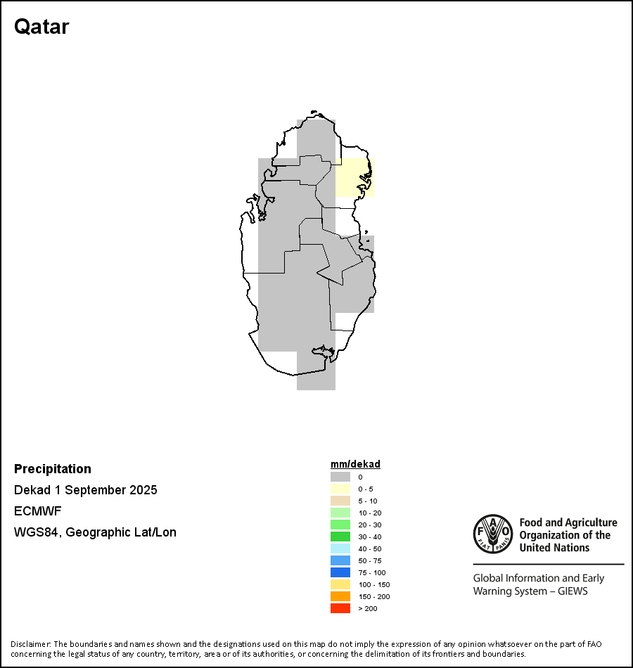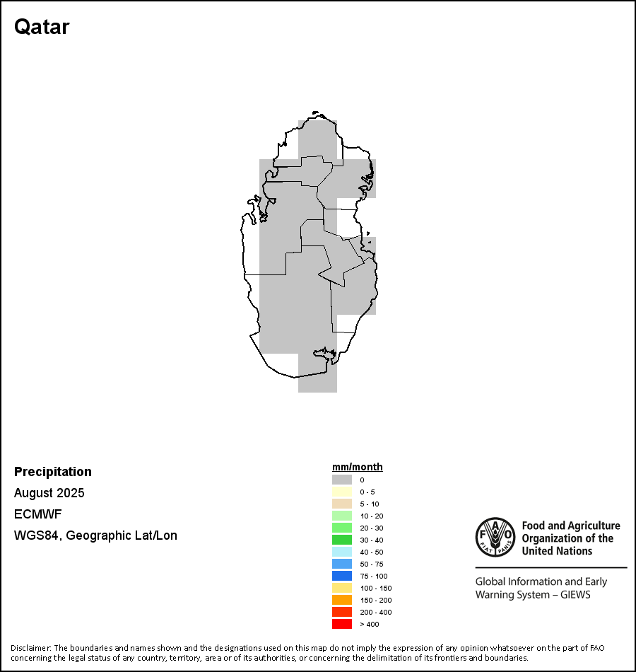 الهطولات المقدرة المتراكمة: متراكمة على المستوى الإداري الأول.