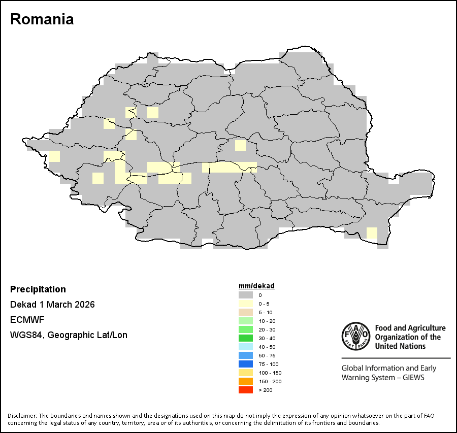 La carte illustre les volumes cumulés de précipitations au cours d’une décade (une période de 10 jours). Les estimations concernant les précipitations pour tous les pays africains (à l'exception du Cap Vert et de Maurice) proviennent du NOAA/FEWSNet, tandis que les données concernant les autres pays sont obtenues à partir du CEPMMT.