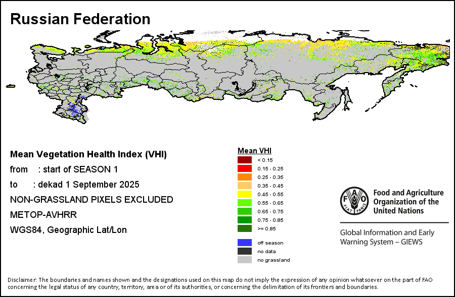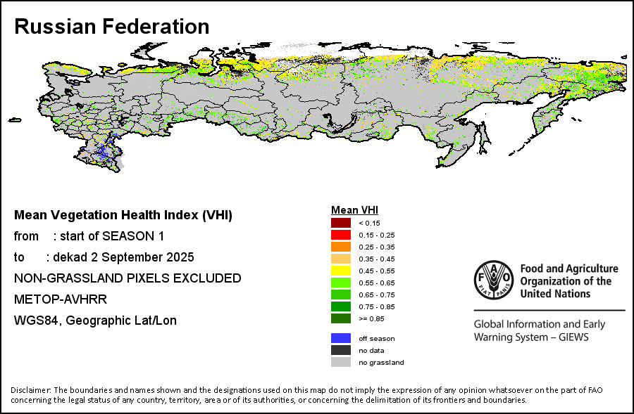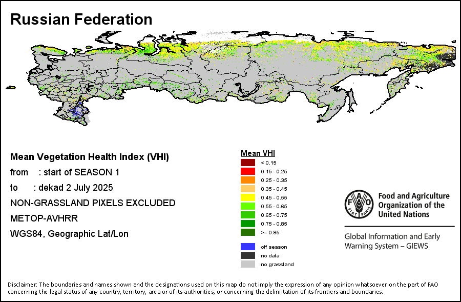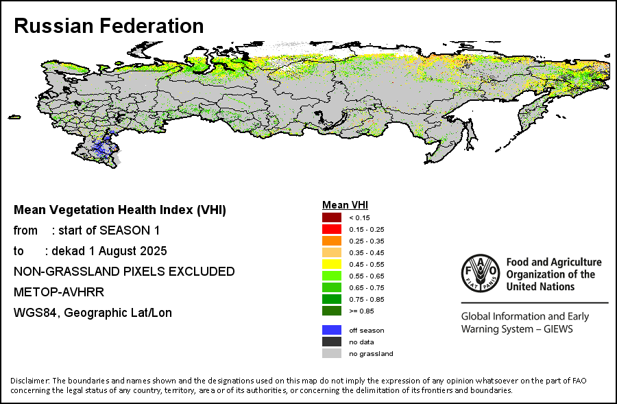 衡量季节进度的基础是每个像元的植被物候长期平均值。这种简化计算意味着设定作物/牧草物候处于静态,也就是说每年的季节推进速度恒定。