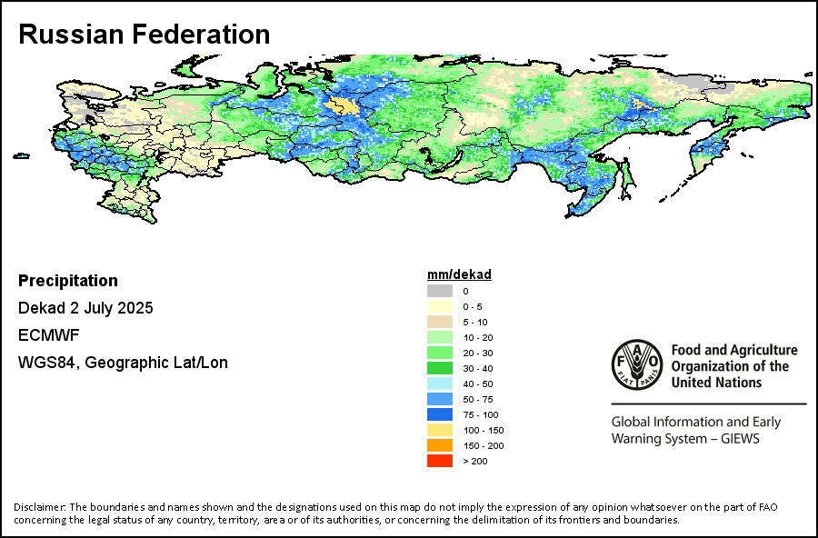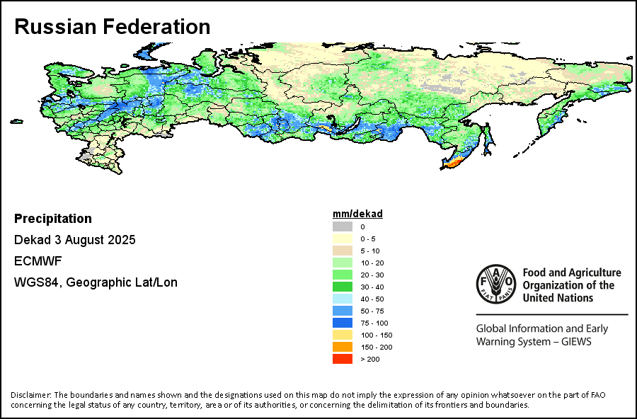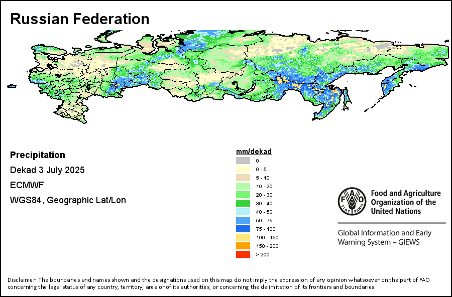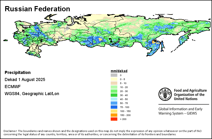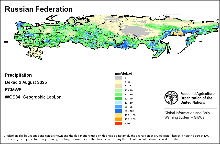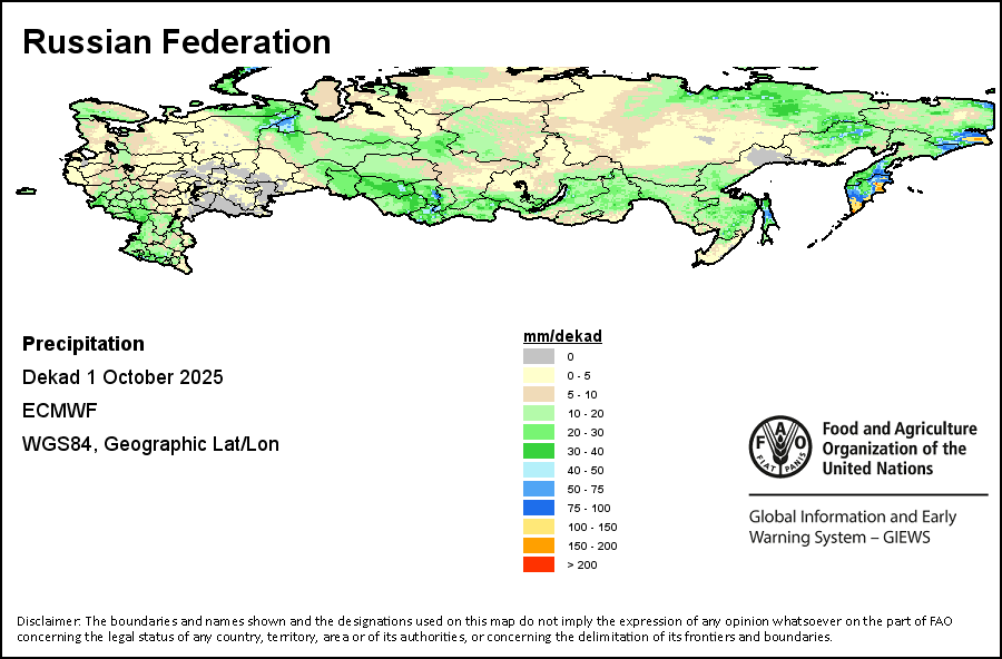 该图谱显示了每一旬(十天)的累积降水量。 所有非洲国家的降水量估算(除佛得角和毛里求斯外)均取自NOAA/FEWSNet,其他国家则取自ECMWF。