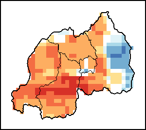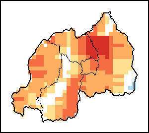 The Normalized Difference Vegetation Index (NDVI) measures the “greenness” of ground cover and is used as a proxy to indicate the density and health of vegetation. NDVI values range from +1 to -1, with high positive values corresponding to dense and healthy vegetation, and low and/or negative NDVI values indicating poor vegetation conditions or sparse vegetative cover. The NDVI anomaly indicates the variation of the current dekad to the long-term average, where a positive value (for example 20 percent) would signify enhanced vegetation conditions compared to the average, while a negative value (for instance -40 percent) would indicate comparatively poor vegetation conditions.