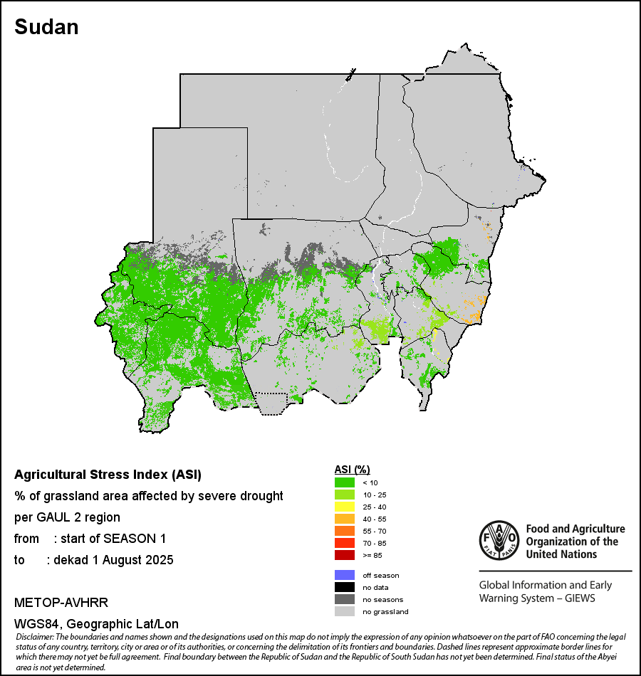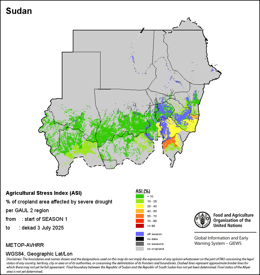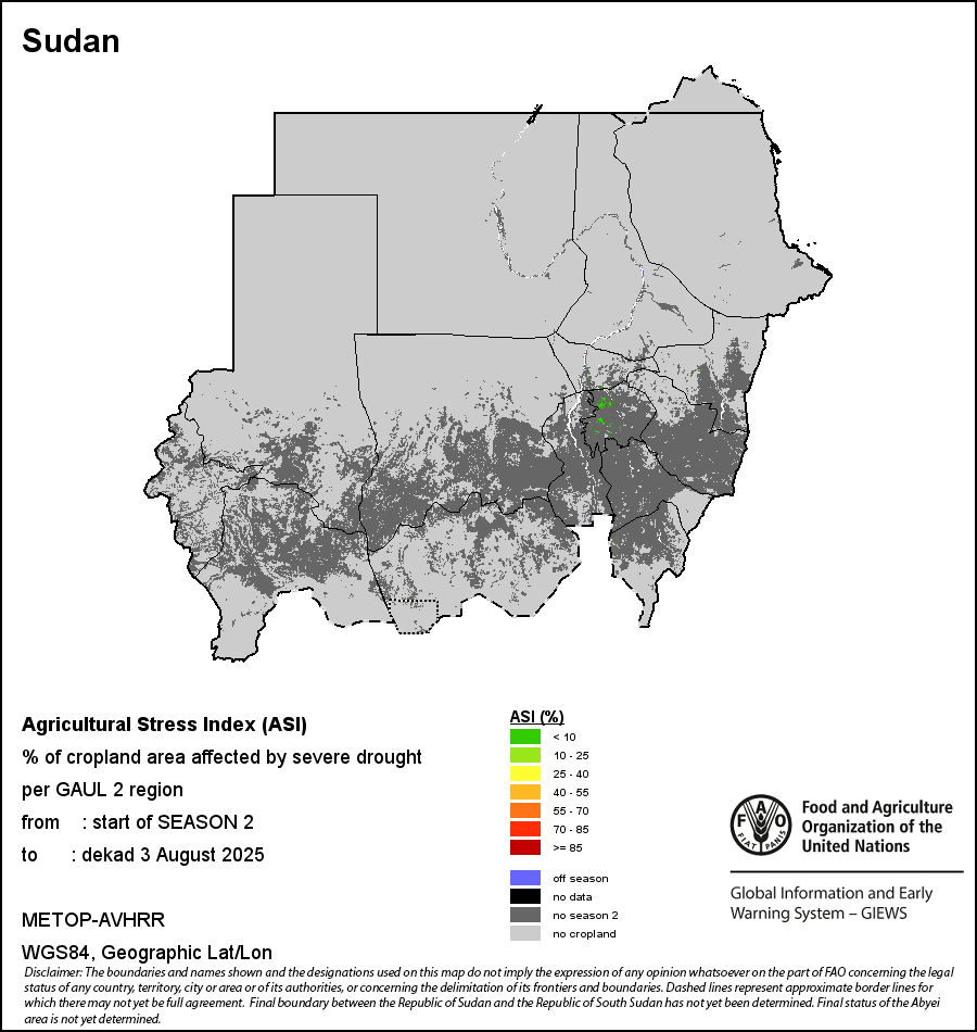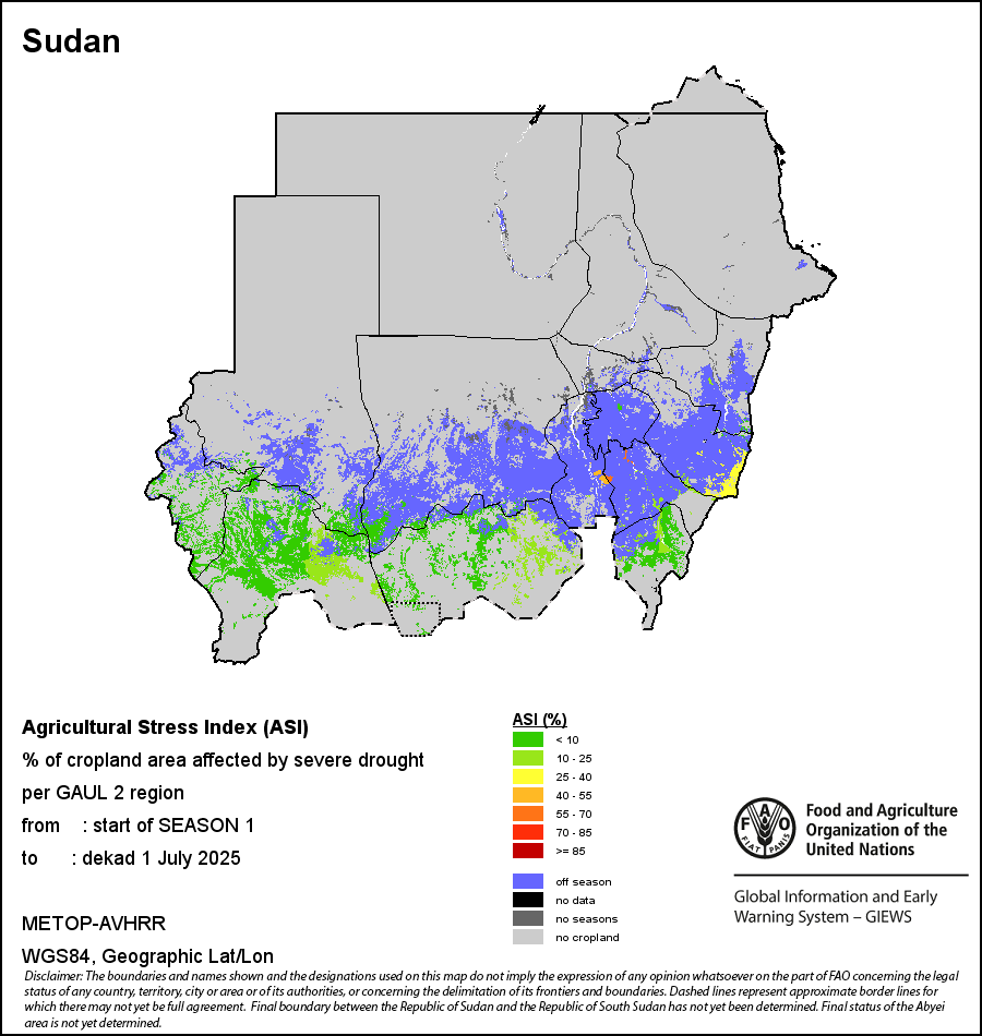 يصور مؤشر الإجهاد الزراعي السنوي النسبة المئوية من الأراضي الزراعية المتأثرة بالجفاف على امتداد الموسم الزراعي بأكمله ضمن منطقة إدارية ما. ويختلف هذا المؤشر السنوي عن مؤشر الإجهاد الزراعي الذي يعتمد على أحوال الجفاف منذ بداية الموسم وحتى فترة العشرة أيام الراهنة.