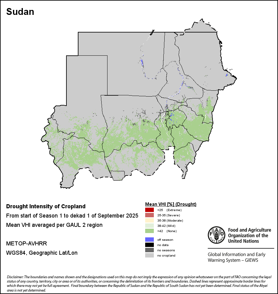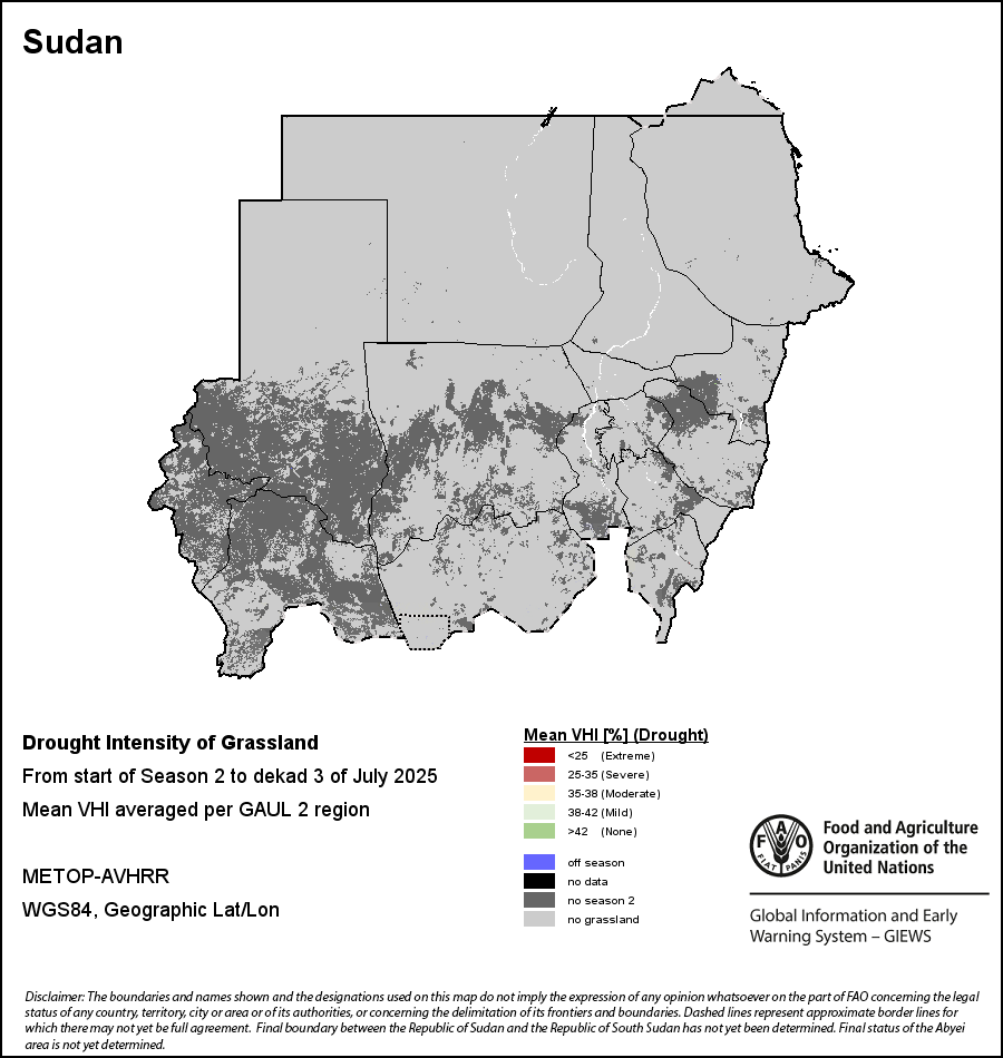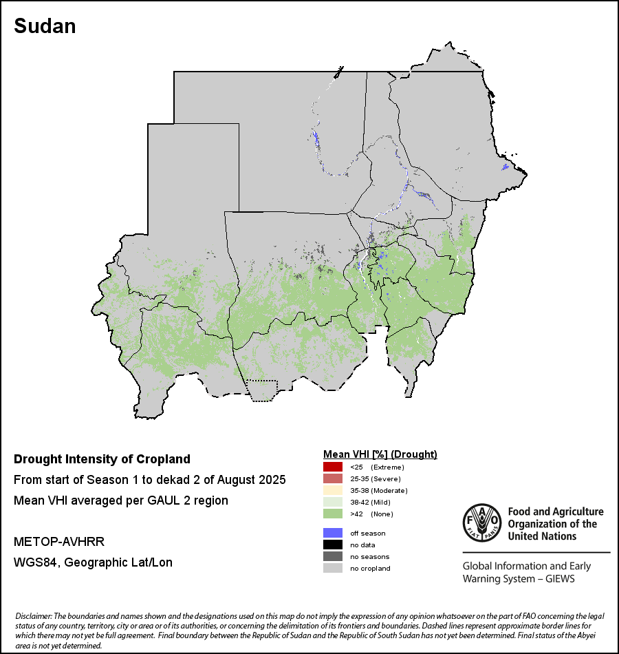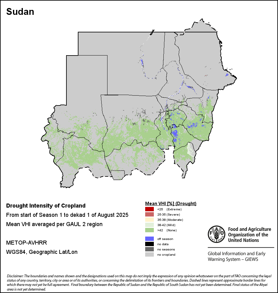 مد جميع المؤشرات النباتية الثلاثة على بيانات نباتية لعشرة أيام مأخوذة من حساس METOP-AVHRR بدقة 1 كم (2007 وما بعد). أما بيانات الفترة من 1984-2006 والتي هي أيضاً بدقة 1 كم فمأخوذة من مجموعة بيانات المقياس الإشعاعي المتقدم ذو الدقة العالية جدا التابع للإدارة الوطنية لدراسة المحيطات والغلاف الجوي بدقة 16 كم. وتؤخذ تقديرات الهطولات لكافة بلدان أفريقيا (ما عدا كابو فيردي وموريشوس) من شبكة بيانات الإدارة الوطنية لدراسة المحيطات والغلاف الجوي/نظام الإنذار المبكر بالمجاعة، أما بالنسبة للبلدين المتبقيين فتؤخذ من المركز الأوروبي للتنبؤات الجوية المتوسطة المدى.
