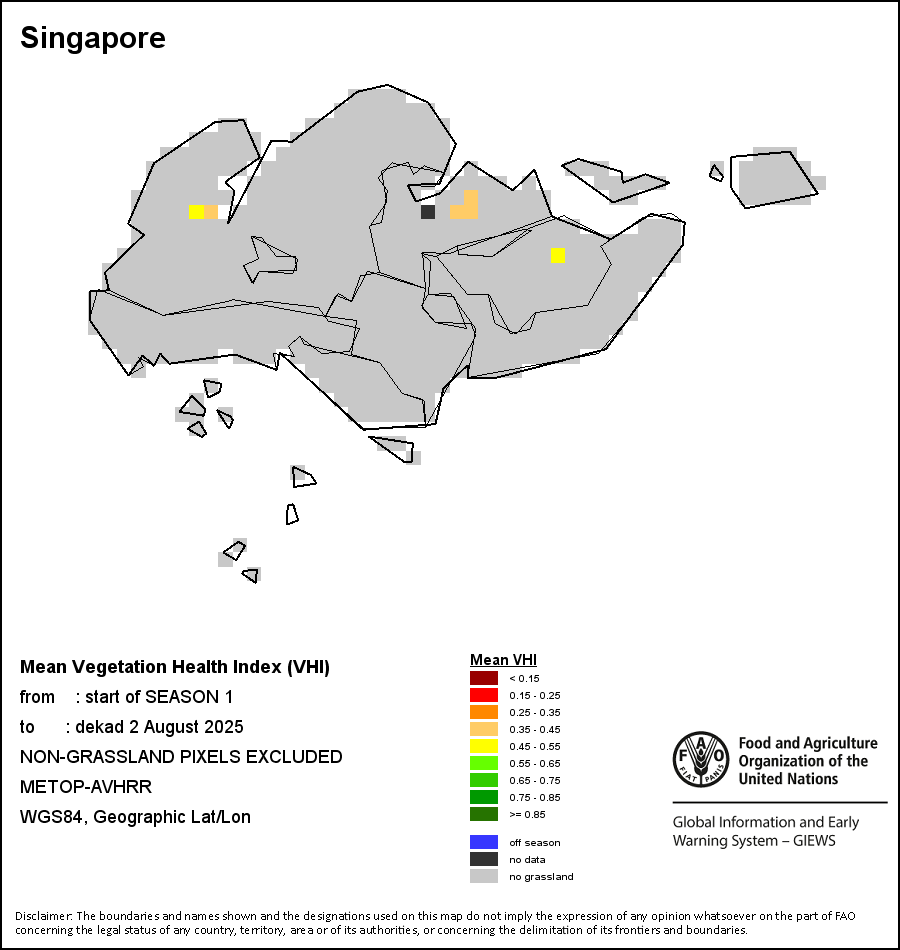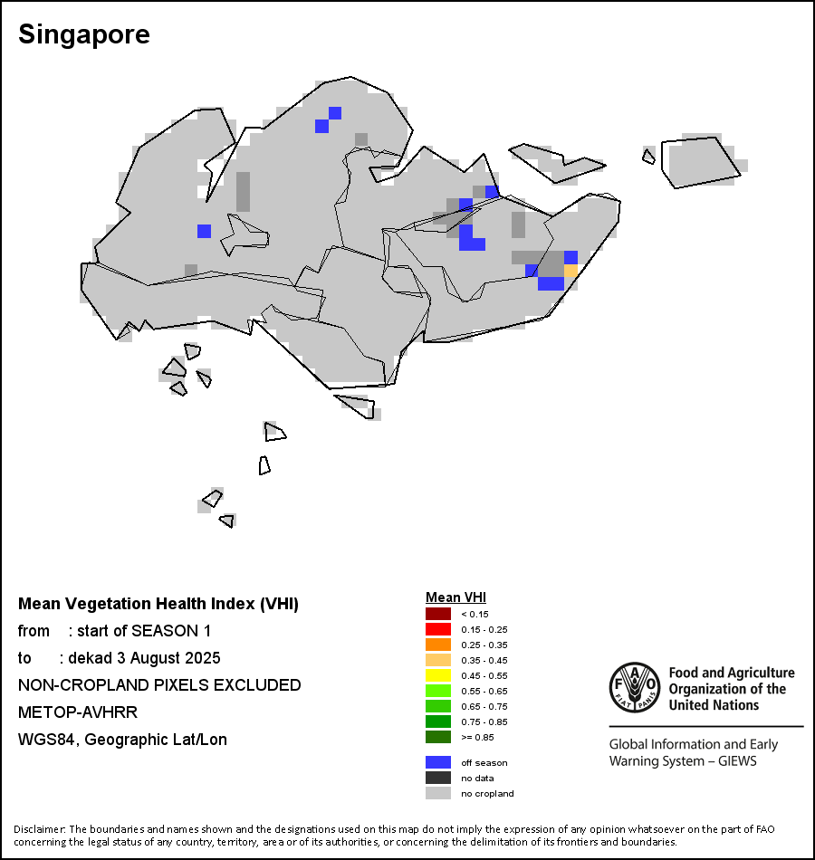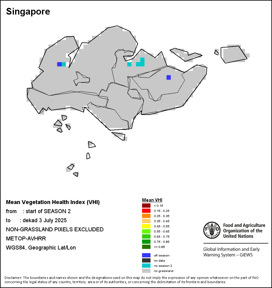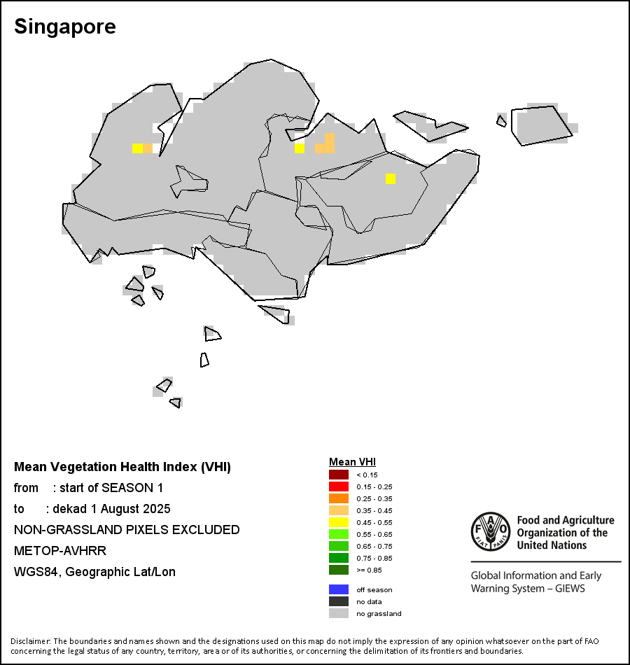 The country level maps and graphs depict the latest 36-month period of the seasonal, vegetation and precipitation indicators. The data is presented by dekad and month.   More