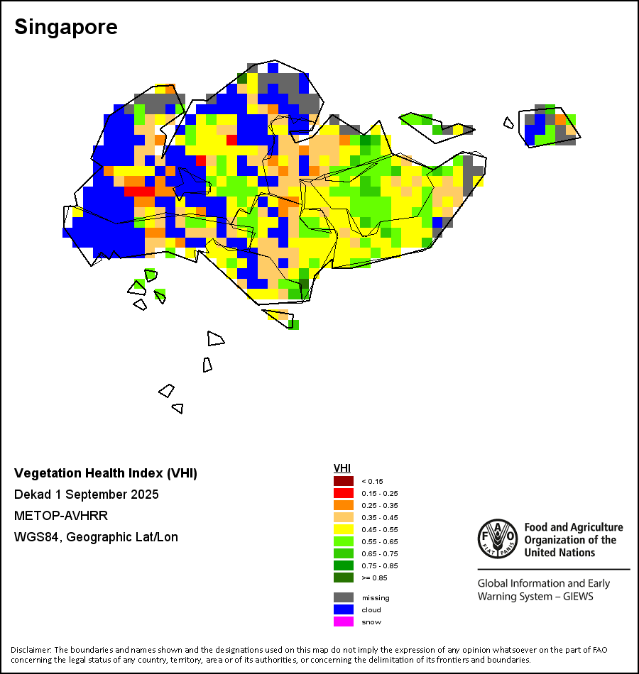 All three vegetation indicators are based on 10-day (dekadal) vegetation data from the METOP-AVHRR sensor at 1 km resolution (2007 and after). Data at 1 km resolution for the period 1984-2006 are derived from the NOAA-AVHRR dataset at 16 km resolution. Precipitation estimates for all African countries (except Cabo Verde and Mauritius) are taken from NOAA/FEWSNet, while for the remaining countries data is obtained from ECMWF.