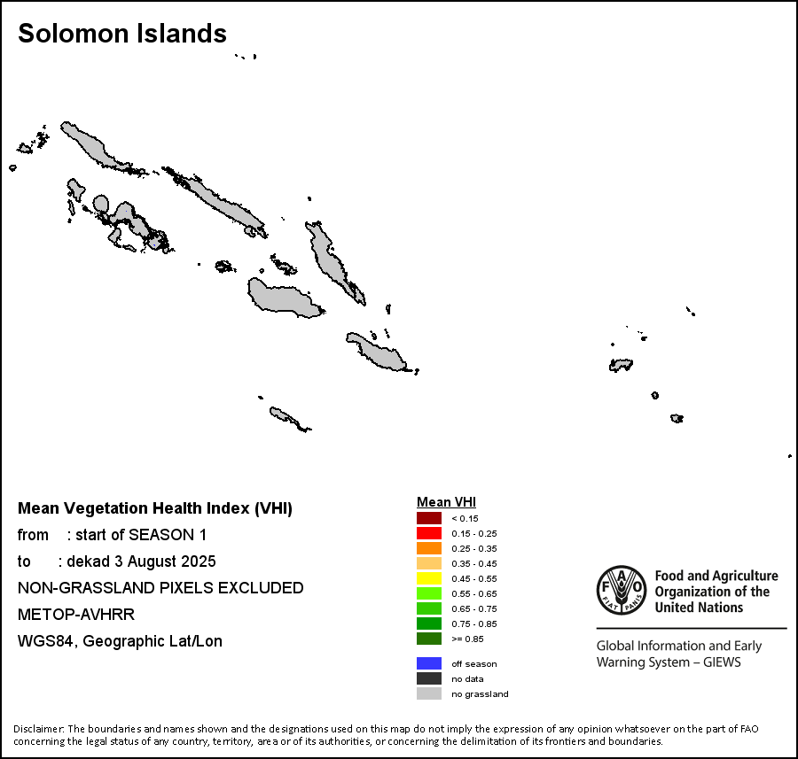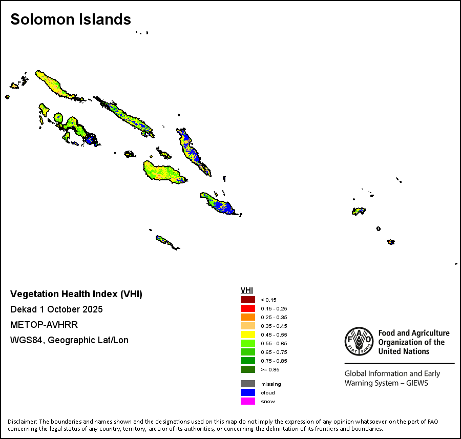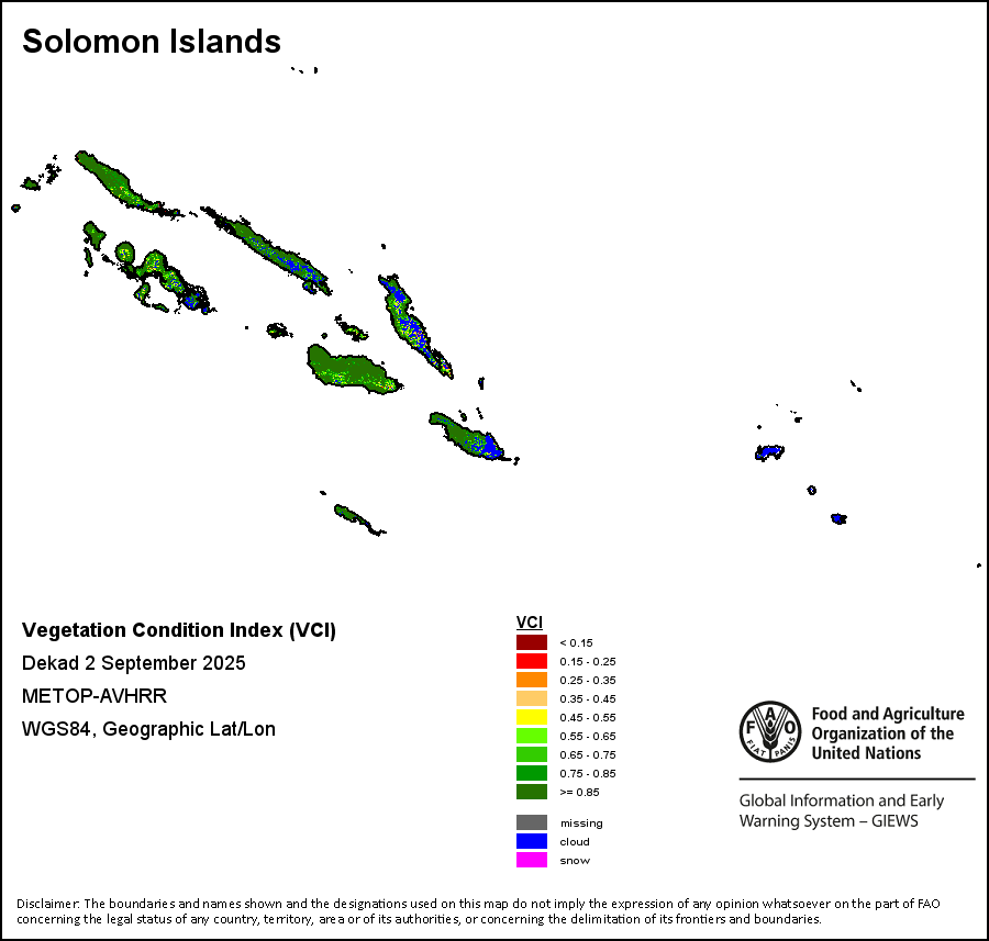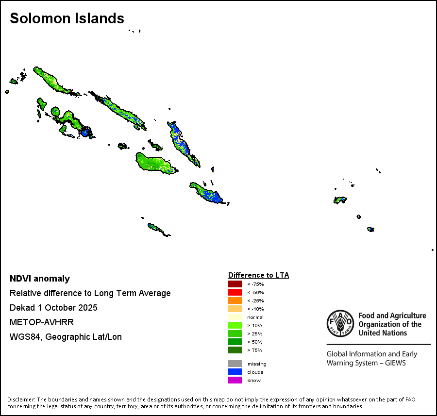 يقيس المؤشر الموحد لتباين الغطاء النباتي مستوى "خضرة" الغطاء النباتي ويُستخدم على نحوٍ غير مباشر للإشارة إلى كثافة النباتات وصحتها. وتتراوح قيم المؤشر الموحد من + 1 إلى -1، حيث تمثل القيم الإيجابية العالية نباتات كثيفة وسليمة، أما القيم المتدنية أو السالبة للمؤشر فتدل على حالة نباتات ضعيفة أو غطاء نباتي مبعثر. ويشير الشذوذ في المؤشر الموحد لتباين الغطاء النباتي إلى التباين ما بين فترة العشرة أيام الراهنة والمعدل طويل الأجل، حيث تدل القيمة الإيجابية (20 في المائة مثلاً) عن تحسن في حالة النباتات قياساً بالمعدل، بينما تدل القيمة السالبة (-40 في المائة مثلاً) على ضعف حالة النباتات نسبياً.