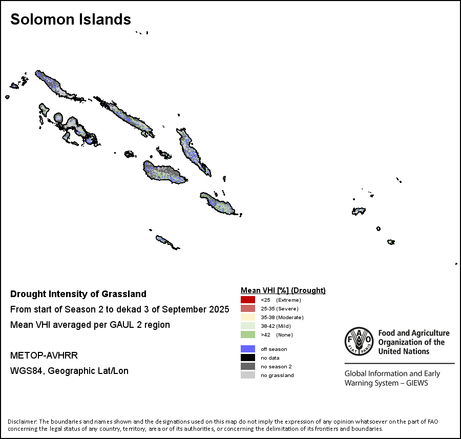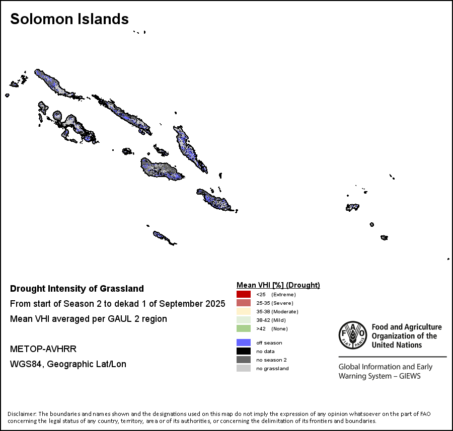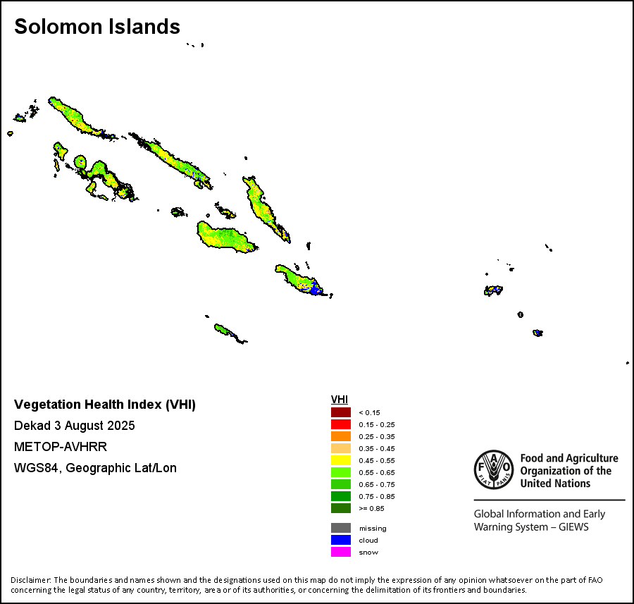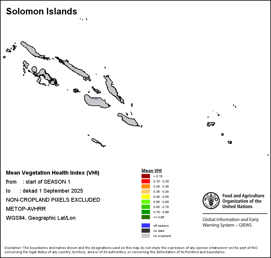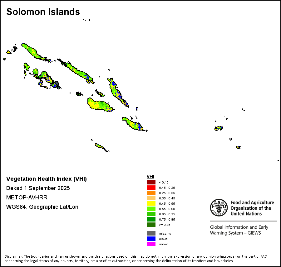 يقيس المؤشر الموحد لتباين الغطاء النباتي مستوى "خضرة" الغطاء النباتي ويُستخدم على نحوٍ غير مباشر للإشارة إلى كثافة النباتات وصحتها. وتتراوح قيم المؤشر الموحد من + 1 إلى -1، حيث تمثل القيم الإيجابية العالية نباتات كثيفة وسليمة، أما القيم المتدنية أو السالبة للمؤشر فتدل على حالة نباتات ضعيفة أو غطاء نباتي مبعثر. ويشير الشذوذ في المؤشر الموحد لتباين الغطاء النباتي إلى التباين ما بين فترة العشرة أيام الراهنة والمعدل طويل الأجل، حيث تدل القيمة الإيجابية (20 في المائة مثلاً) عن تحسن في حالة النباتات قياساً بالمعدل، بينما تدل القيمة السالبة (-40 في المائة مثلاً) على ضعف حالة النباتات نسبياً.