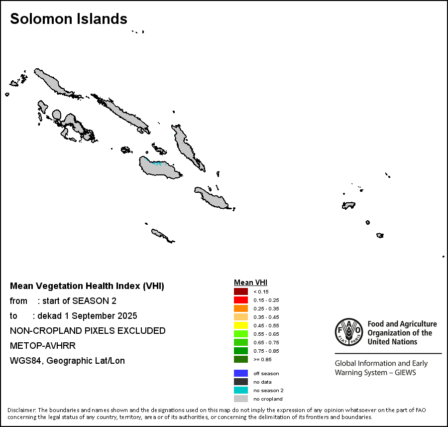 يتيح متوسط مؤشر الصحة النباتية للمستخدم تقييم شدة الجفاف من بداية الموسم الزراعي، حيث يتحقق من صحة النبات وتأثير درجات الحرارة في حالة النبات. أما متوسط مؤشر الصحة النباتية فيمثل معدل قيم مؤشر الصحة النباتية المأخوذة كل عشرة أيام على امتداد الموسم الزراعي للمحصول وحتى تاريخه. ويأخذ بعين الاعتبار حساسية المحصول للإجهاد المائي خلال الموسم الزراعي ويحسب التأثير الزمني لنقص الرطوبة منذ بداية الموسم الزراعي وحتى فترة العشرة أيام الراهنة.