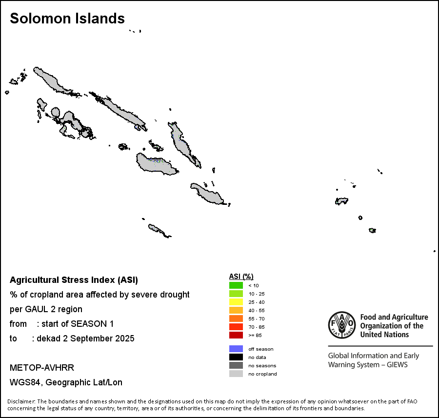 يصور مؤشر الإجهاد الزراعي السنوي النسبة المئوية من الأراضي الزراعية المتأثرة بالجفاف على امتداد الموسم الزراعي بأكمله ضمن منطقة إدارية ما. ويختلف هذا المؤشر السنوي عن مؤشر الإجهاد الزراعي الذي يعتمد على أحوال الجفاف منذ بداية الموسم وحتى فترة العشرة أيام الراهنة.