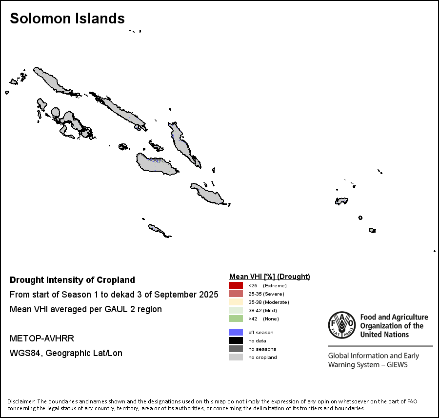 مد جميع المؤشرات النباتية الثلاثة على بيانات نباتية لعشرة أيام مأخوذة من حساس METOP-AVHRR بدقة 1 كم (2007 وما بعد). أما بيانات الفترة من 1984-2006 والتي هي أيضاً بدقة 1 كم فمأخوذة من مجموعة بيانات المقياس الإشعاعي المتقدم ذو الدقة العالية جدا التابع للإدارة الوطنية لدراسة المحيطات والغلاف الجوي بدقة 16 كم. وتؤخذ تقديرات الهطولات لكافة بلدان أفريقيا (ما عدا كابو فيردي وموريشوس) من شبكة بيانات الإدارة الوطنية لدراسة المحيطات والغلاف الجوي/نظام الإنذار المبكر بالمجاعة، أما بالنسبة للبلدين المتبقيين فتؤخذ من المركز الأوروبي للتنبؤات الجوية المتوسطة المدى.