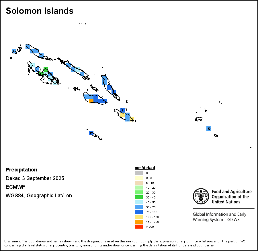 الهطولات المقدرة المتراكمة: متراكمة على المستوى الإداري الأول.
