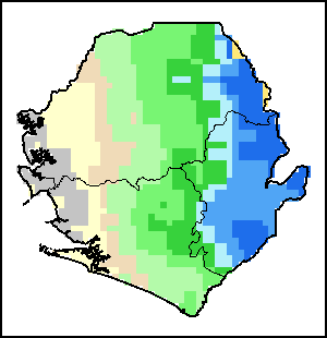 تصور الخرائط والمخططات البيانية المرسومة على مستوى البلد آخر 36 شهراً في للمؤشرات الموسمية والنباتية وتلك المتعلقة بالهطولات. وتمثل البيانات خلال فترة عشرة أيام وشهر. مد جميع المؤشرات النباتية الثلاثة على بيانات نباتية لعشرة أيام مأخوذة من حساس METOP-AVHRR بدقة 1 كم (2007 وما بعد). أما بيانات الفترة من 1984-2006 والتي هي أيضاً بدقة 1 كم فمأخوذة من مجموعة بيانات المقياس الإشعاعي المتقدم ذو الدقة العالية جدا التابع للإدارة الوطنية لدراسة المحيطات والغلاف الجوي بدقة 16 كم. وتؤخذ تقديرات الهطولات لكافة بلدان أفريقيا (ما عدا كابو فيردي وموريشوس) من شبكة بيانات الإدارة الوطنية لدراسة المحيطات والغلاف الجوي/نظام الإنذار المبكر بالمجاعة، أما بالنسبة للبلدين المتبقيين فتؤخذ من المركز الأوروبي للتنبؤات الجوية المتوسطة المدى. بفضل ازياد دقة مؤشرات الغطاء النباتي (من قبيل المؤشر الموحد لتباين الغطاء النباتي و مؤشر الغطاء النباتي) قياسًا بمؤشرات الهطول الأقل دقة، نجد أن عدد الوحدات التي يمكن توليد إحصاءات مناطقية صالحة لها على المستوى دون الوطني باستخدام مؤشرات الغطاء النباتي يكون أكبر من عدد الوحدات المتاحة لمؤشرات الهطول لدى بلدان معينة.