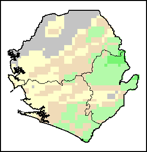 Les cartes et les graphiques au niveau des pays illustrent les indicateurs d’avancement de la campagne, de végétation et de pluviométrie au cours des 36 derniers mois. Les données sont présentées par décade et par mois. Les trois indicateurs de végétation sont basés sur les données relatives à la végétation pour 10 jours (décade) du capteur Metop-AVHRR par pixel de 1 km (à partir de 2007). Les données à 1 km de résolution pour la période 1984-2006 ont été dérivées des données du NOAA-AVHRR à 16 km de résolution. - Les estimations concernant les précipitations pour tous les pays africains (à l'exception du Cap Vert et de Maurice) proviennent du NOAA/FEWSNet, tandis que les données concernant les autres pays sont obtenues à partir du CEPMMT. Compte tenu de la résolution plus élevée des indicateurs de végétation (ex. NDVI, VHI) par rapport à celle des indicateurs de précipitations, plus grossiers, le nombre d’unités infranationales pour lesquelles des statistiques zonales valides peuvent être produites à partir des indices de végétation est, dans certains pays, supérieur à celui obtenu à partir des indicateurs de précipitations.