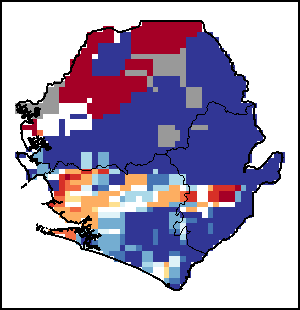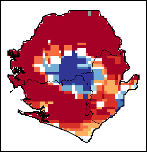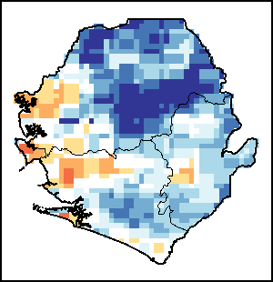 La carte illustre la différence entre le volume actuel des précipitations et leur niveau moyen. Les niveaux de précipitation sont comparés à la moyenne à long terme (MLT), qui renvoie à la période 1989-2015. Les couleurs plus chaudes identifient les zones qui ont reçu des précipitations inférieures à la moyenne, alors que les couleurs plus froides sont attribuées aux zones où les précipitations ont été supérieures à la moyenne.