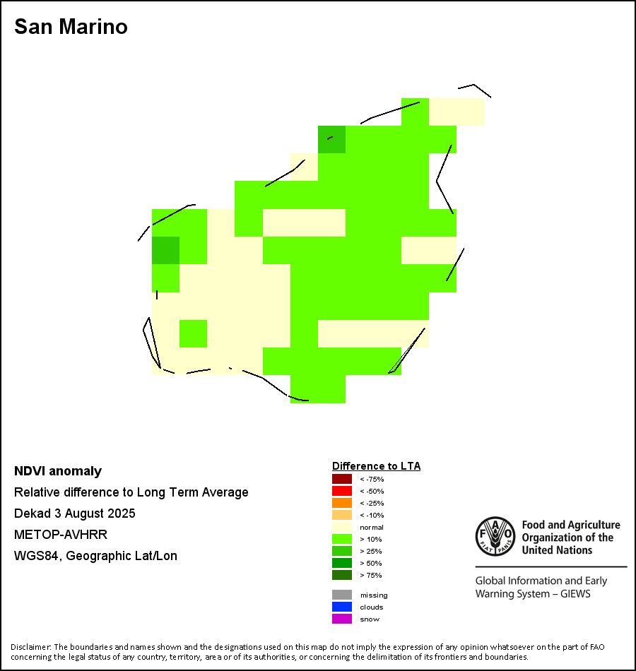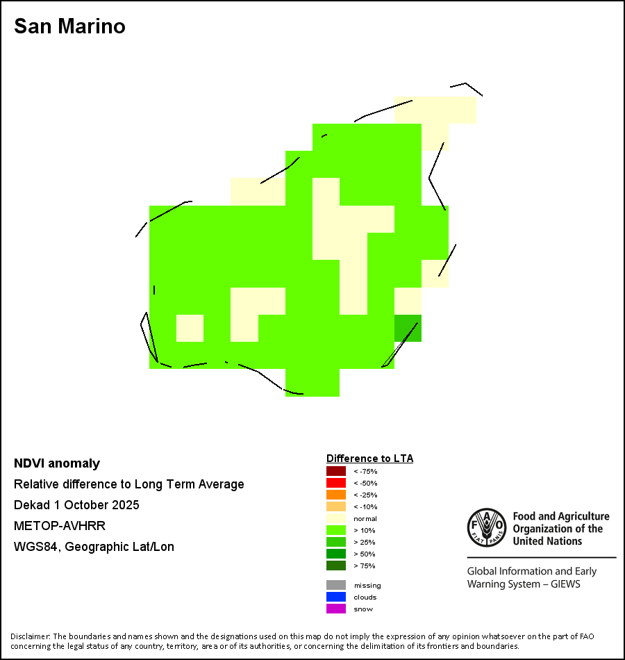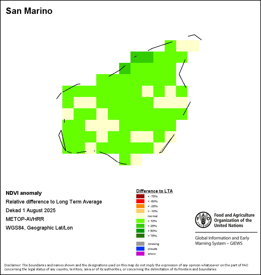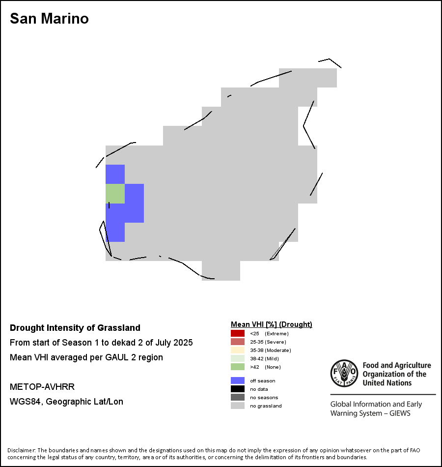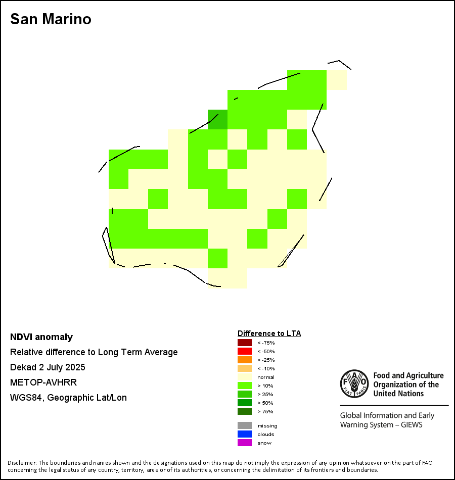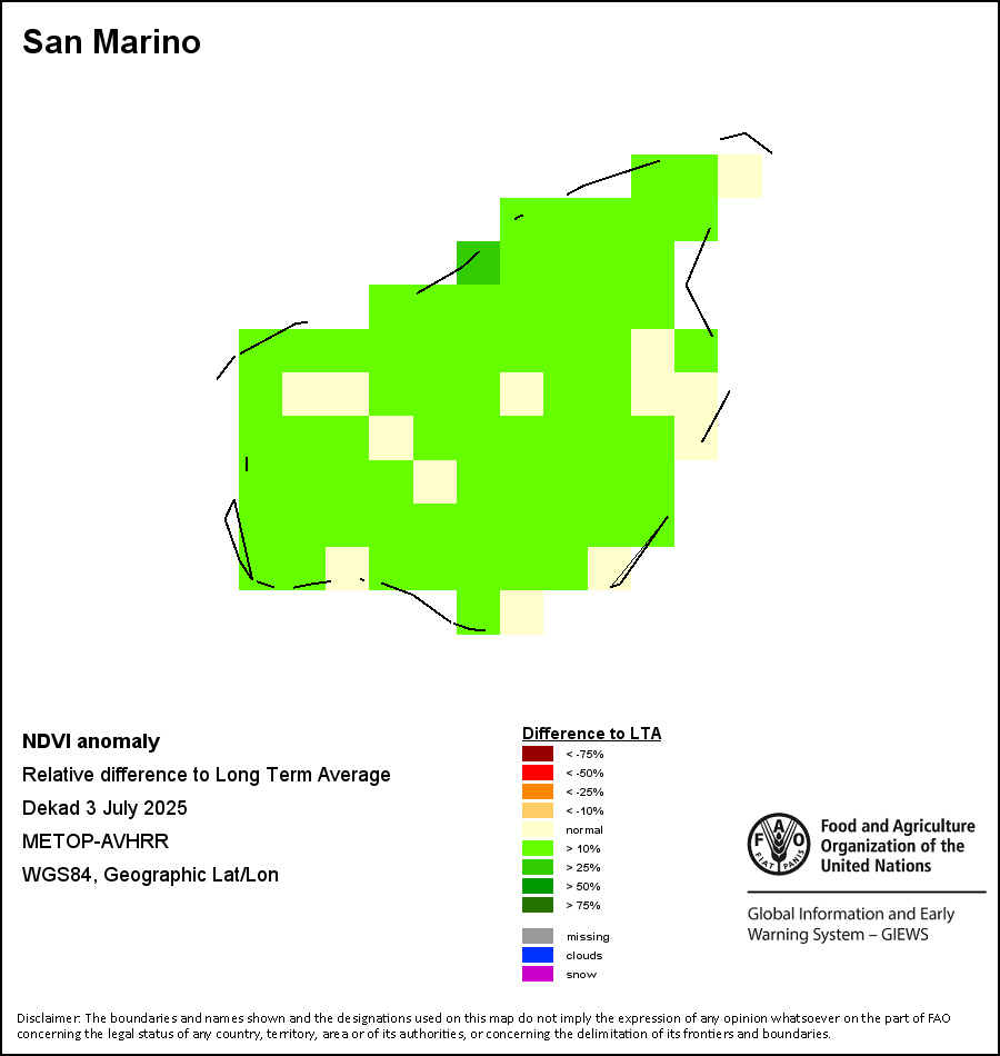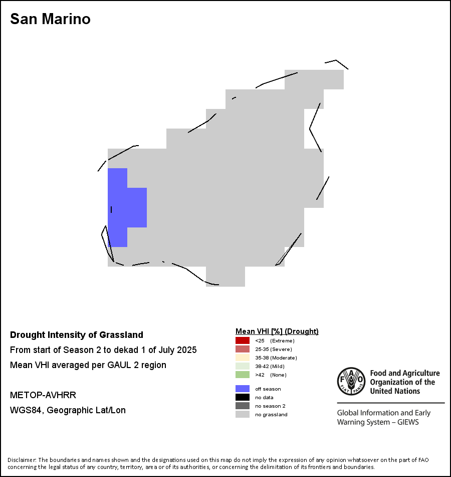 The country level maps and graphs depict the latest 36-month period of the seasonal, vegetation and precipitation indicators. The data is presented by dekad and month.   More