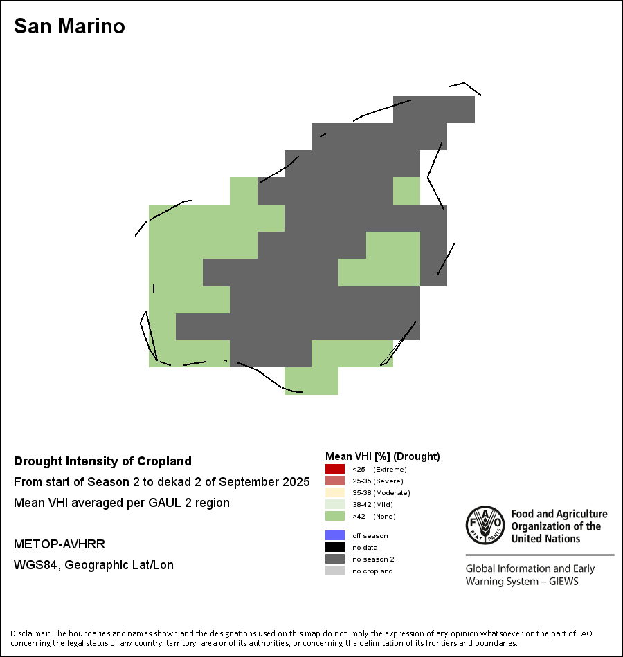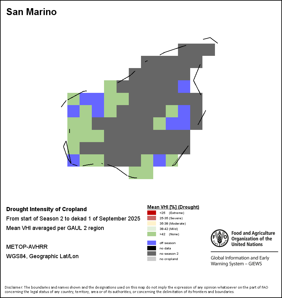 The boundaries and names shown and the designations used on the maps do not imply the expression of any opinion whatsoever on the part of FAO concerning the legal status of any country, territory, city or area or of its authorities, or concerning the delimitation of its frontiers and boundaries.